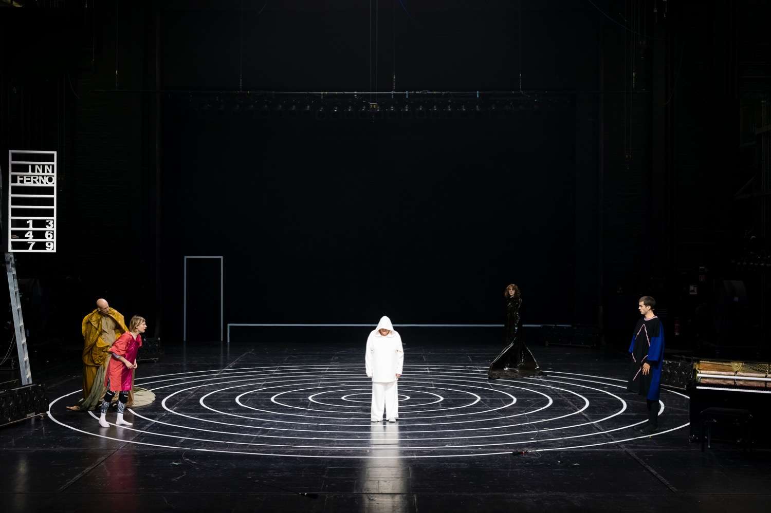 Dichters Vergil die neun Kreise der Hölle (Inferno) hinab und neun Stufen den Läuterungsberg (Purgatorium) hinauf, durchlebt als Busse für sein Leben die Strafen und Qualen der Sündigen – ehe er im Paradies Beatrice, die «Seligmachende», wiedersieht. Endlich kommt es zur Begegnung, die im realen Leben nicht möglich war.