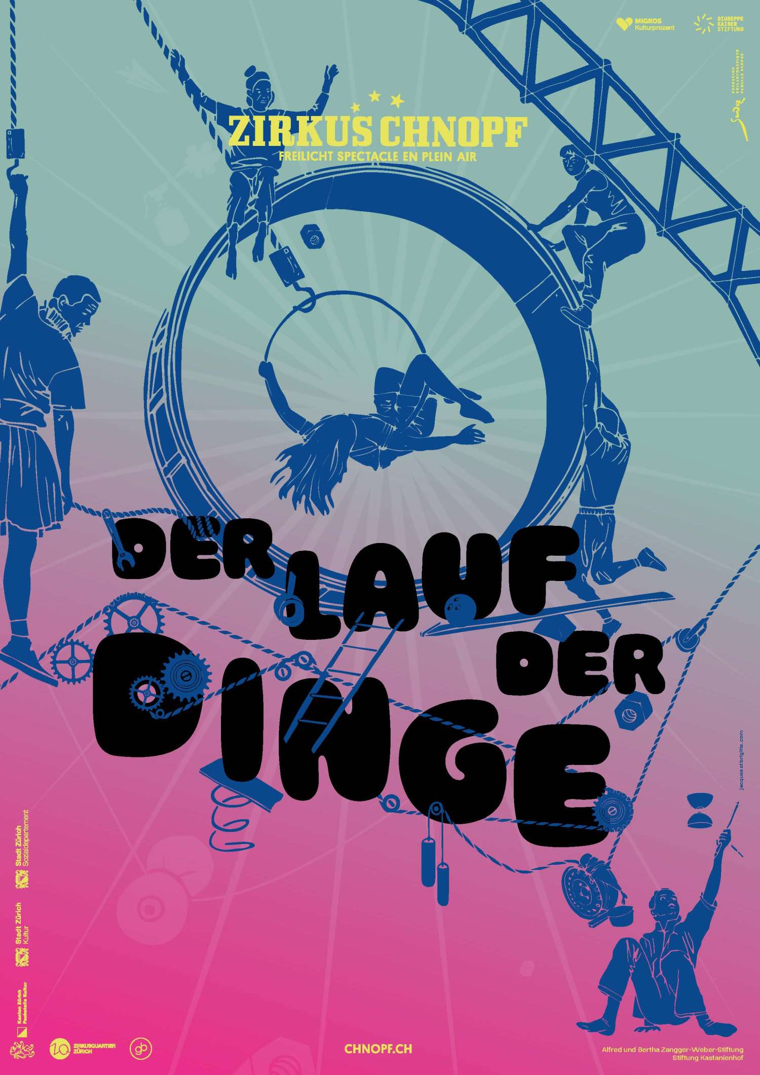 Der Zirkus Chnopf verbindet Welten. Theater, Tanz, Artistik und Musik treffen aufeinander. Junge und erfahrene Menschen mit unterschiedlichen kulturellen Hintergründen arbeiten zusammen. Zirkus Chnopf ist ein gemeinnützig anerkannter Verein mit dem Ziel der Nachwuchsförderung im Bereich Artistik und Physical Theater. Dazu geht er jährlich mit dem gleichnamigen Freilichtspektakel auf Tournee und ist ein Aushängeschild und wichtiger Förderer von neuem Zirkus im Kanton Zürich und in der ganzen Schweiz.
