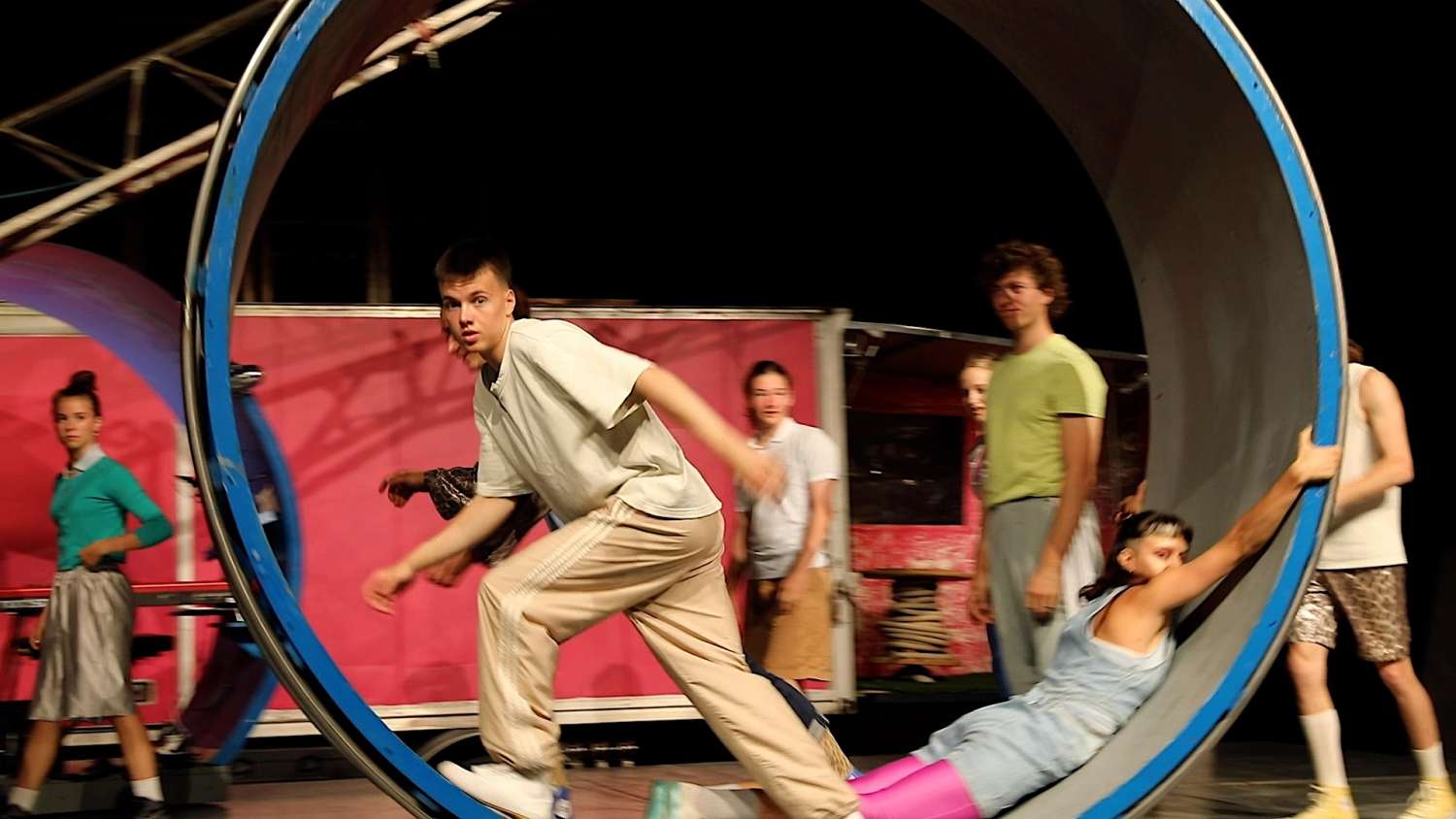 Diesen Sommer zeigt der Zirkus Chnopf nochmals «Der Lauf der Dinge». Durch neue Team-Mitglieder bekommt die Show aber eine neue Dynamik und bringt die Dinge erst recht ins Rollen. Mit dabei: 5 Profis und 6 Jugendliche und junge Artist:innen zwischen 14 und 23 Jahren, die sich gemeinsam der Frage widmen, wie Systeme funktionieren – oder eben nicht. Was entsteht, wenn alle gemeinsam agieren – und was passiert, wenn einzelne Elemente sich widersetzen?