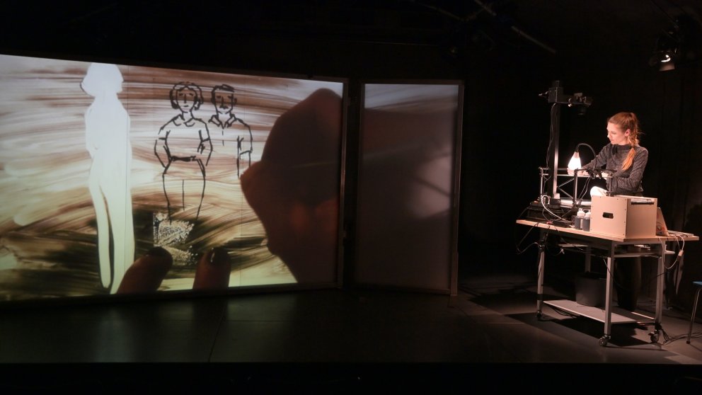 Die Zeichnerin Anja Sidler begleitet die Erzählungen live mit sich stetig wandelnden und überraschenden Bildern. Es entsteht ein zarter und humorvoller Dialog zwischen zwischen Ton und Bild, Vergangenheit und Gegenwart. Ein poetisches und anregendes Stück über Liebe, Zusammenleben, Identität und freie Lebensgestaltung.