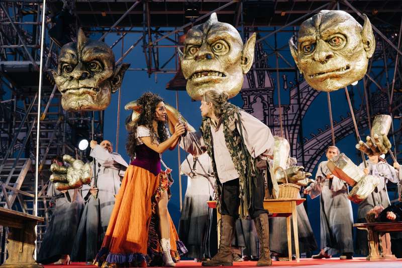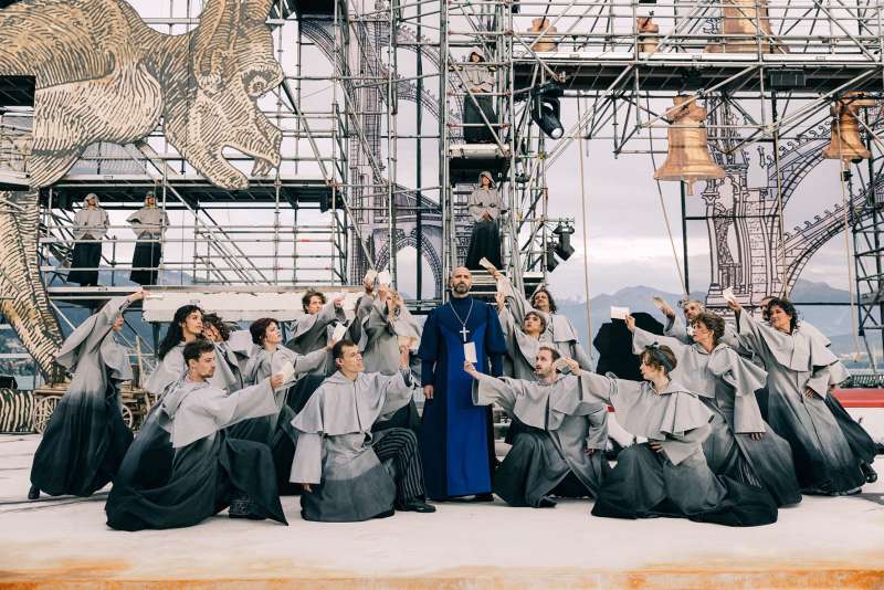 «Dank des renommierten Namens der Thunerseespiele in der Musicalszene konnten wir aus einer Vielzahl erfahrener Künstler:innen auswählen und eine erstklassige Cast für «Der Glöckner von Notre Dame» zusammenstellen», schwärmt Dominik Flaschka, welcher nach «Mamma Mia!» (2018) zum zweiten Mal für die Inszenierung in Thun die Regie übernimmt. Musicals, wie «Ewigi Liebi», «Mein Name ist Eugen» oder «Sister Äct», sind nur drei weitere schillernde Namen von einer ganzen Reihe hervorragender Bühneninszenierungen des Autors, Schauspielers, Theaterleiters und Regisseurs aus Rorschach. Er wurde mehrfach ausgezeichnet, u. a. viermal mit dem Prix Walo. Die Inszenierung von Flaschka besticht durch ihren Tiefgang und ist denn auch einer der Hauptgründe, warum Musical-Liebhaber:innen die Thuner Inszenierung nicht verpassen sollten. Seine Interpretation des Glöckners von Notre Dame kommt so ganz anders daher, als man es erwarten würde. Statt Bonbon-Farben und üppige Deko steht ein grosses Baugerüst auf der Bühne mit reduzierten Details. Inspiriert wurde es vom Wiederaufbau der Pariser Kathedrale, was zu Beginn des Stückes durch ein Plakat und moderne Bauarbeiter angezeigt wird. Die Zuschauenden werden sodann vom 21. Jahrhundert ins Spätmittelalter geleitet. Diese nüchterne Umgebung spielt mit dem Raum und setzt die Protagonist:innen ins Zentrum. Wie beim Gerüst, so kann man in die Figuren blicken und nimmt teil an ihrer Zerrissenheit und den inneren Kämpfen, die sie austragen. Dies schafft eine Tiefe, die man von Musicals nur selten geboten bekommt.