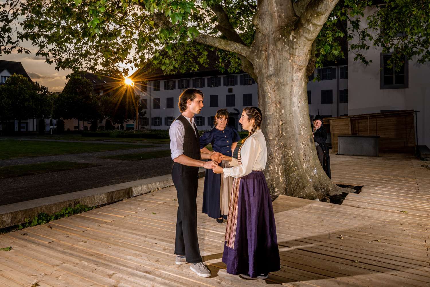 Der Grund, weshalb MuriTheater im Sommer 2023 das Auswandererthema auf die Bühne bringt, liegt aber nicht in seiner offensichtlichen Aktualität, sondern vor allem in seiner Emotionalität: Es beinhaltet ganz einfach alles, was ein packendes Theatererlebnis ausmacht – von der Hoffnung auf das grosse Glück über den Abschiedsschmerz bis hin zu Intrigen, Wut, Trauer und bitterer Enttäuschung. Dass die Geschichte lokal verankert ist und quasi vor der Haustür spielt, macht sie nur umso berührender. Zweimal musste «Amerika», das bereits 2020 hätte uraufgeführt werden sollen, aufgrund der Pandemie verschoben werden. Beim dritten Anlauf klappt es nun. Die 50 Ensemblemitglieder sind seit Anfang Jahr am Proben, die Kostüme in Produktion, die Requisiten türmen sich. Es kommt Leben in den Murianer Theaterbetrieb. Entsprechend zuversichtlich zeigt sich Regisseur Adrian Meyer, der sich auch beim dritten Anlauf die gute Laune nicht verderben lässt. Grund dazu hat er: Trotz mehrmaligem Verschieben ist ein Grossteil der Laienschauspieler:innen nach wie vor dabei. Dasselbe gilt für das künstlerische Team.