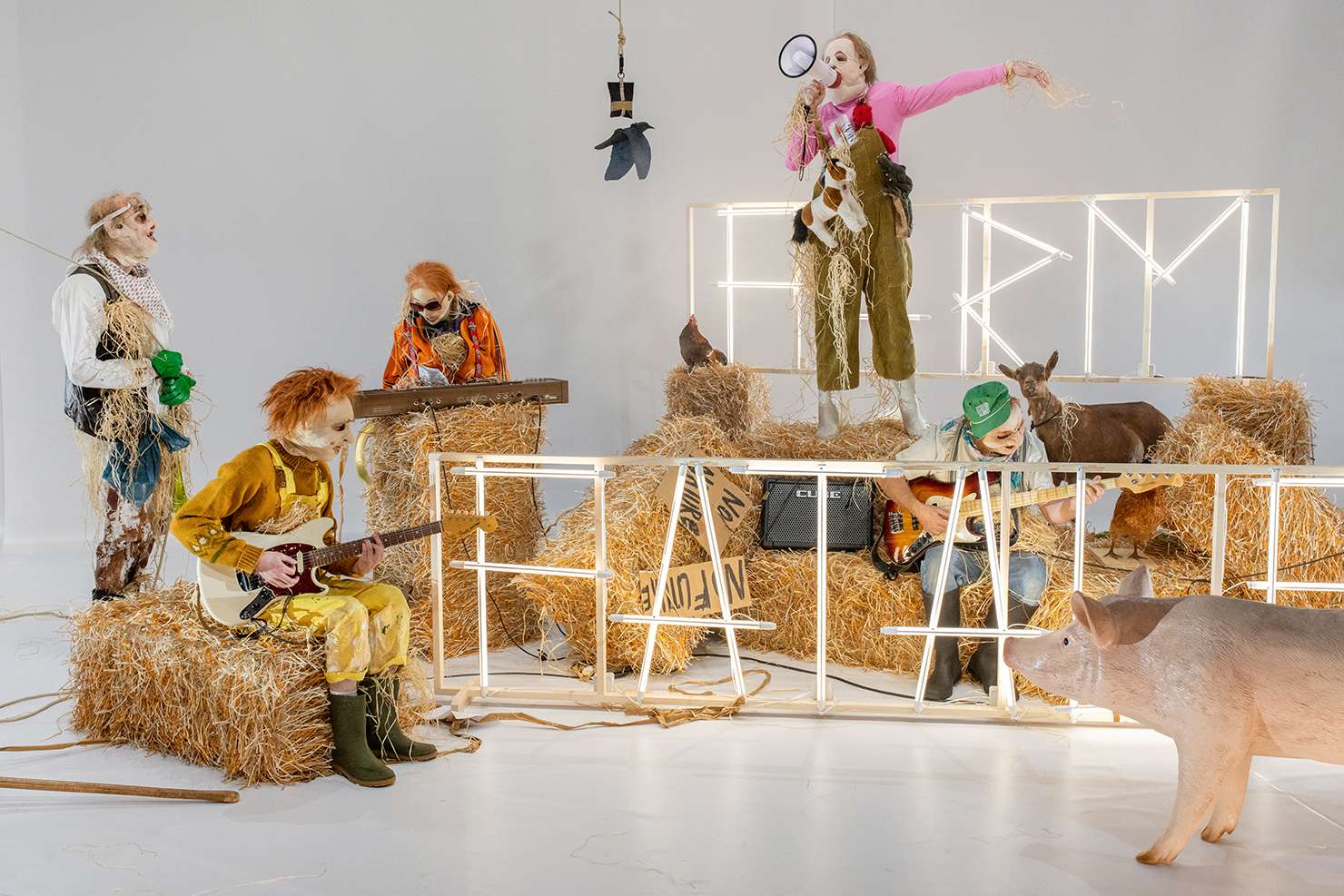Der französische Regisseur Philippe Quesne ist ein Atmosphärenmagier, berühmt für seine zugleich poetischen wie auch bizarr-fröhlichen Untergangsszenarien. In «Farm Fatale» hat er eine von Mensch und Tier verlassene, skurrile Welt nach einer Umweltkatastrophe entworfen, in der fünf liebenswerte Vogelscheuchen mit viel Musik und Humor von einer besseren Zukunft träumen.