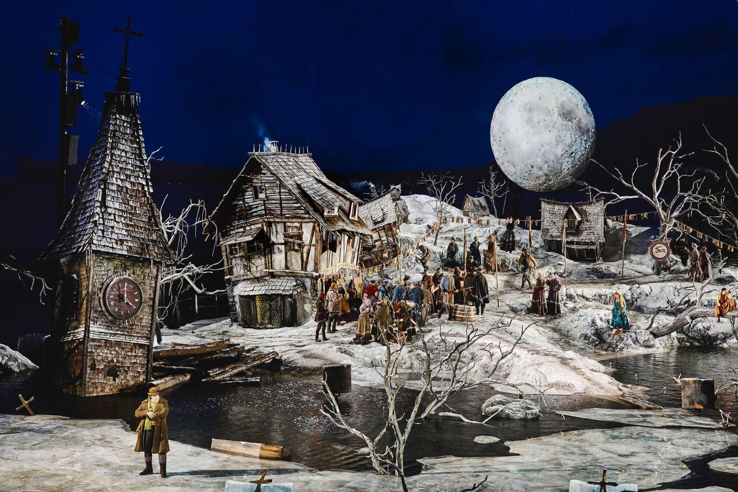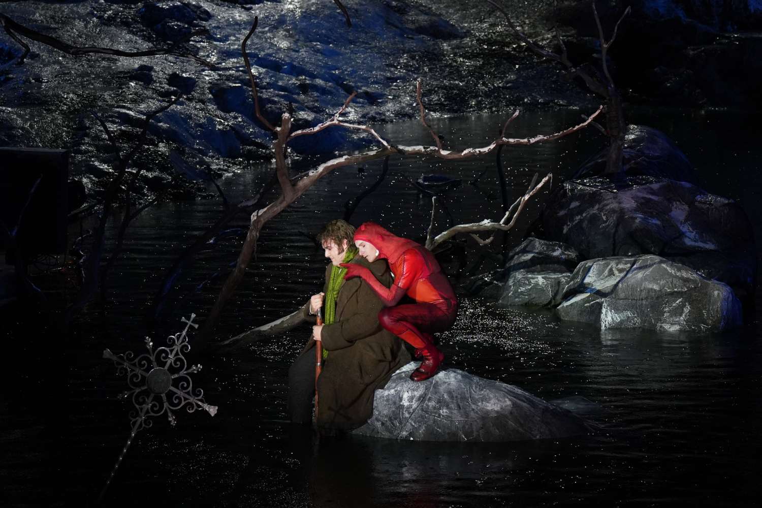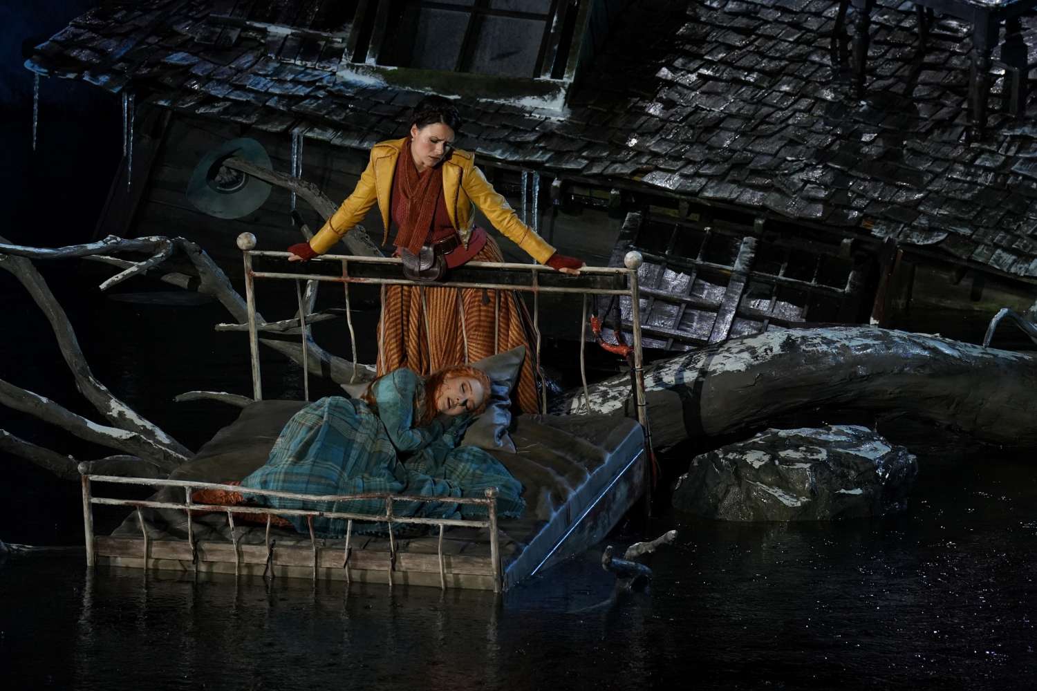 Aus einem künstlichen Becken, das mit 480 000 Liter Seewasser gefüllt ist, tauchen Leichen auf. Wer nicht aufpasst, kann auf der Bühne auf Eis und Schnee ausrutschen. Das Skelett eines Pferdes lässt uns frösteln und ein Metallmonster lernt uns das Gruseln. Zwei Frauen küssen sich innig. Philipp Stölzl macht Oper für alle: Entstaubt, modern, emanzipiert.