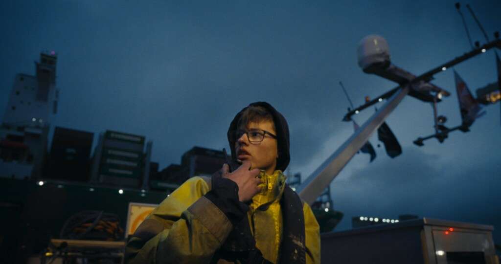 «Die Kameraführung von Lukas Gut macht das Frachtschiff zur Bühne des Spiels zwischen Mensch und Maschine. Vor dem endlosen Blau leuchten Hafenlichter wie farbige Markierungen, die Stimmung schaffen. Die Kamera fokussiert Gesten, Blicke und Geschichten der Menschen, die im Schatten der Maschinen bestehen. Dabei wird die physische Arbeit spürbar und zugleich poetisch: Jeder Kran, jedes Licht und jeder Körper bilden eine Choreografie, in der Alltägliches Symbolkraft gewinnt. So erscheint der Hafen nicht nur als Ort, sondern als intensives, atmosphärisch dichtes Bühnenbild des Lebens.»