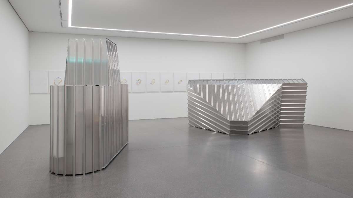 Neben den bildhauerischen Arbeiten hat Flurin Bisig über viele Jahre hinweg einen Werkkomplex von farbigen Papierarbeiten entwickelt, die er Faltungen nennt. Die zeichnerisch anmutenden und meist gerahmt gezeigten Serien sind eine Überführung des skulpturalen Denkens in eine zweidimensionale Form. Sie erlauben es dem Künstler, seine Ideen auch mit geringen Mitteln fortlaufend weiterzuentwickeln, sind aber zu einem wichtigen und eigenständigen Teil seines Schaffens geworden. Im Bündner Kunstmuseum zeigt Flurin Bisig nun Skulpturen und Papierarbeiten zusammen in einer auf den Ausstellungsraum bezogenen Präsentation.