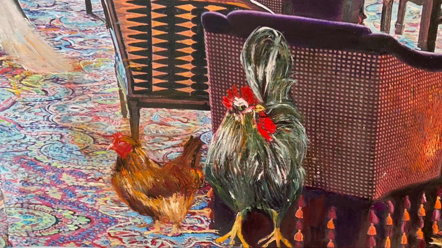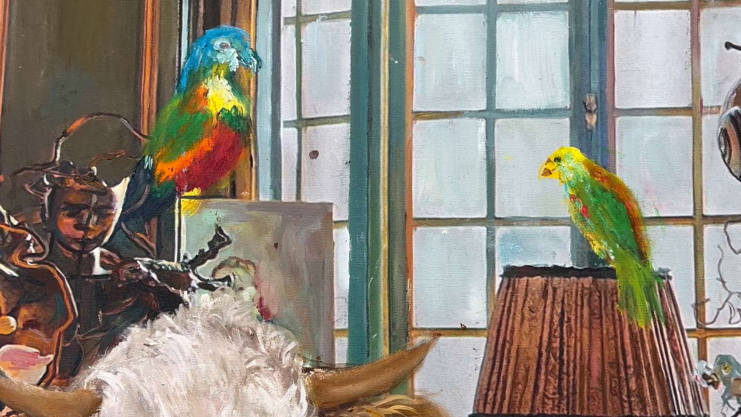 Kühe betreten festliche Salons, Schweine betten sich auf Diwans, Vögel schwingen sich zu Kristallleuchtern auf. Fische und Falken bevölkern die Portraits von Frauen, die sich Netze übergestülpt haben oder sich hinter Blumenbouquets verstecken. Dem Tier, das durch unsere Nachtgesichter geistert, wird seit Urzeiten eine besondere Bedeutung zugeschrieben. In der Traumdeutung steht es für Ängste, Sehnsüchte oder innere Konflikte. Christa Mayrhofers neue Werke machen deutlich warum.