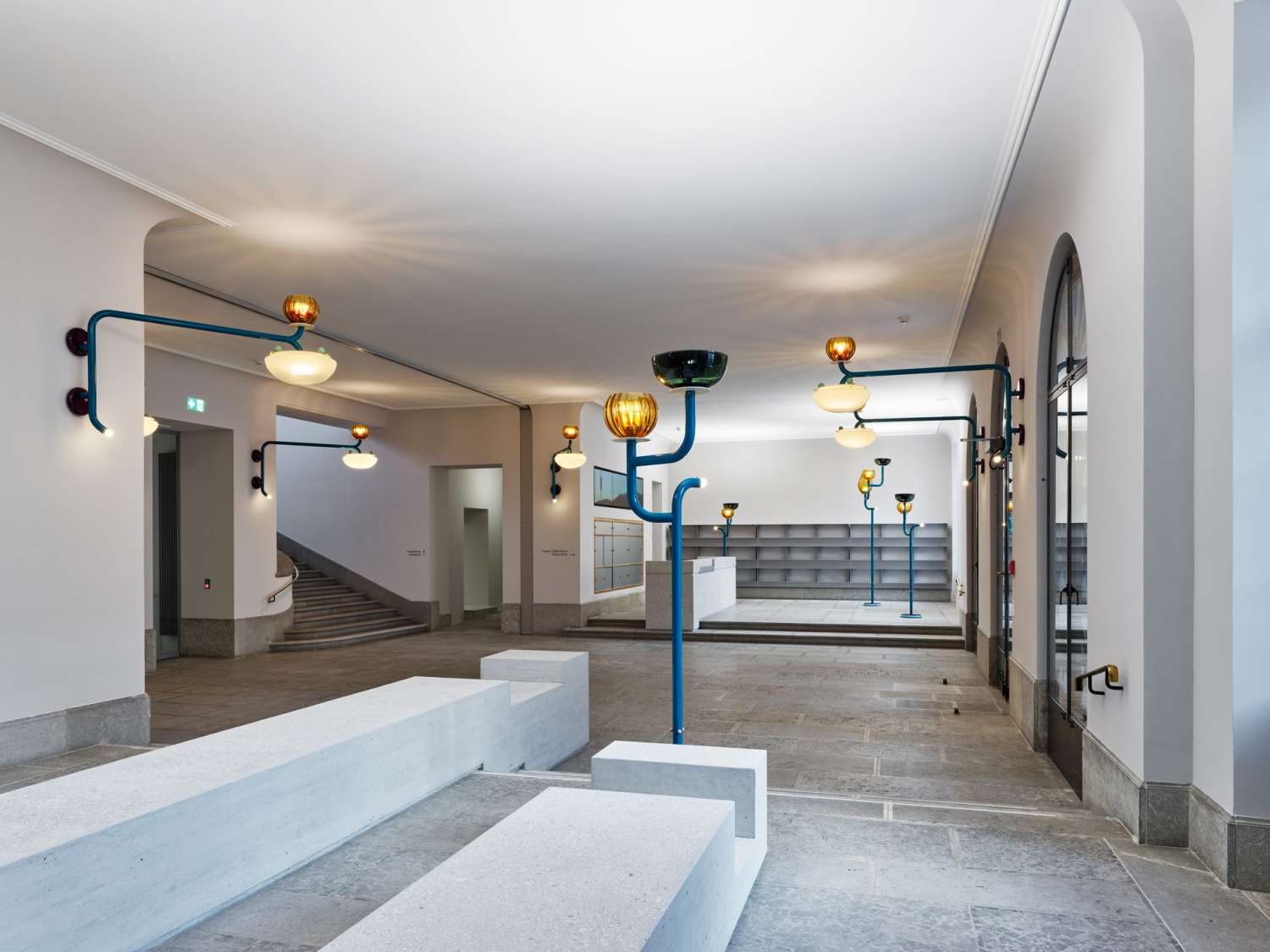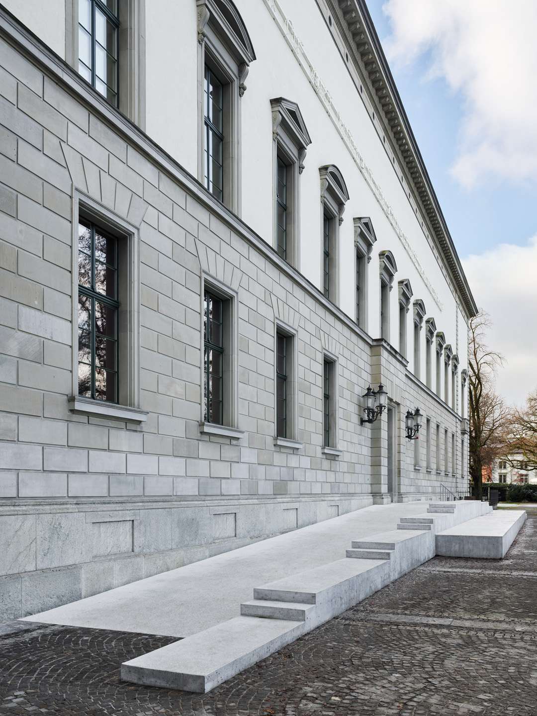 Anstelle eines klassischen Architekturwettbewerbs wurden Teams von Kunstschaffenden und Architekt:innen eingeladen, den Eingangsbereich des Museums neu zu denken. Den Wettbewerb gewannen die in Berlin lebende Künstlerin Ayşe Erkmen und die Berliner Architektin Heike Hanada. Ihr Siegerprojekt verbindet Innen- und Aussenräume auf beeindruckende Weise: Ein skulpturaler Akzent prägt die Stadtseite, während im Inneren plastische und architektonische Elemente zu einer minimalistischen begehbaren Skulptur verschmelzen. Der Übergang zwischen Museum und Stadtgarten wird dabei als fliessende Bewegung erlebbar.
