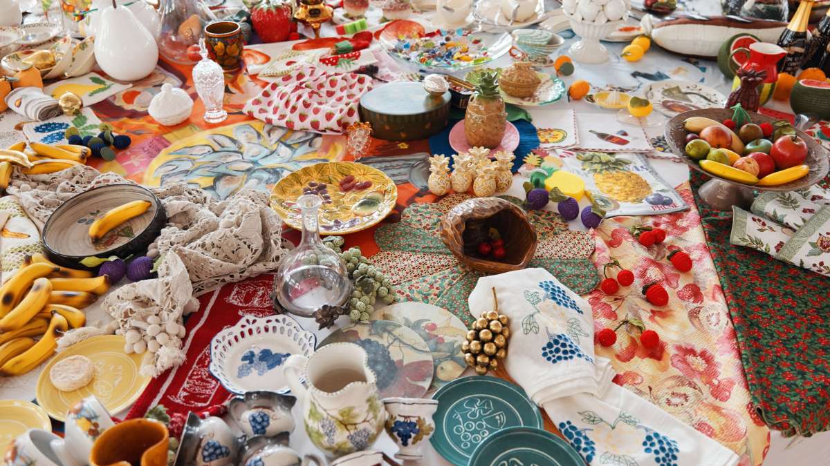 Dreizehn mit feinstem weissem Tuch gedeckte Tische warten auf die Gäste, denen hier allerdings nichts Ess- oder Trinkbares vorgesetzt wird. Ausgewählte Objekte aus der Sammlung des Textilmuseums inspirierten Künstler:innen und Designer:innen zu Installationen, die Nahrungsmittel abbilden – Fake Food – und interpretieren. Verschiedene Zeitepochen, gesellschaftliche Klassen und Geschmäcker treffen aufeinander und treten in einen spannenden Dialog.