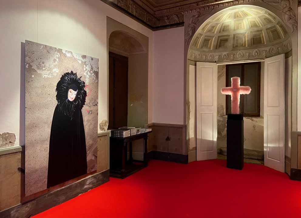 Die gezeigten Objekte der Rauminstallation Das Damenzimmer, 1990/96, weisen auf die Themen der Weiblichkeit und die Rolle der Frau hin. Das Werk Arte, 1996, in der Apsis, ist ein mit zarten, rosaroten Marabufedern umwickeltes Kreuz. Es stellt einen Kontrast zum patriarchalen, von Folter und Leiden bestimmten Symbol dar. Manon verleiht ihrem Kreuz eine schützende warme, weibliche Note, wodurch sie dem Leidensaspekt des Kreuzes einen aufbauenden gegenüberstellt, in Form der Kunst. Die vier leuchtenden Muscheln im Saal der Verlobten stellen Objekte der Sehnsucht nach der Ferne dar: «Die Idee kam mir während eines Aufenthalts in Genua. In Souvenirläden kann man kitschige Muscheln kaufen, die zart leuchten». Die Muscheln symbolisieren Weiblichkeit, Sexualität, Fruchtbarkeit, Zurückgezogenheit und Erotik. Durch die Sublimierung der Triebkräfte entsteht Künstlerisch-Schöpferisches: Letteratura, Poesia, Pittura e Surrealismo (Literatur, Dichtung, Malerei und Surrealismus) mit denen die vier Muscheln auf Metall-Plaketten betitelt sind. Sie werden zum ersten Mal in der Schweiz ausgestellt.