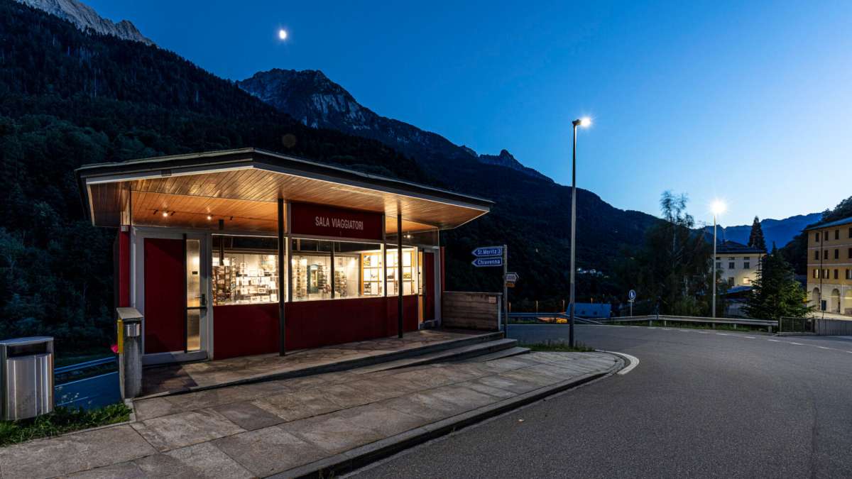 Wenn die Postbushaltestelle selbst zum Ausflugsziel wird: Als Zollgebäude wurde die Sala Viaggiatori im kleinen Örtchen Castasegna 1958/59 von Bruno Giacometti erbaut, heute dient es nicht nur als Ausstellungsraum, sondern nach wie vor auch als Haltestelle des Grenzortes. Unter der Leitung des Kurators Luciano Fasciati entstehen zweimal jährlich disziplinenübergreifende Ausstellungen. Aktuell widmet sich «Fragile» ganz der Glaskunst und setzt sich das Ziel, Tradition und Zukunft zu verbinden.