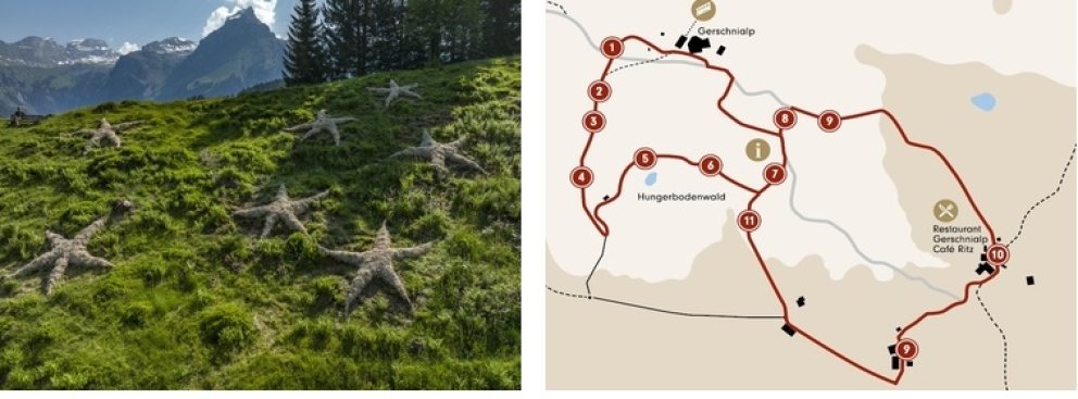 Der Landart Pfad Gerschnialp lädt zu einem besonderen Kunsterlebnis im Einklang mit der Natur ein. 13 Kunstschaffende aus der Schweiz, Deutschland und Italien gestalten den Wald und das Alpgebiet mit sinnlichen, überraschenden Werken. Auf einem drei Kilometer langen Rundgang treffen Landschaft und Kunst in stiller Harmonie aufeinander.