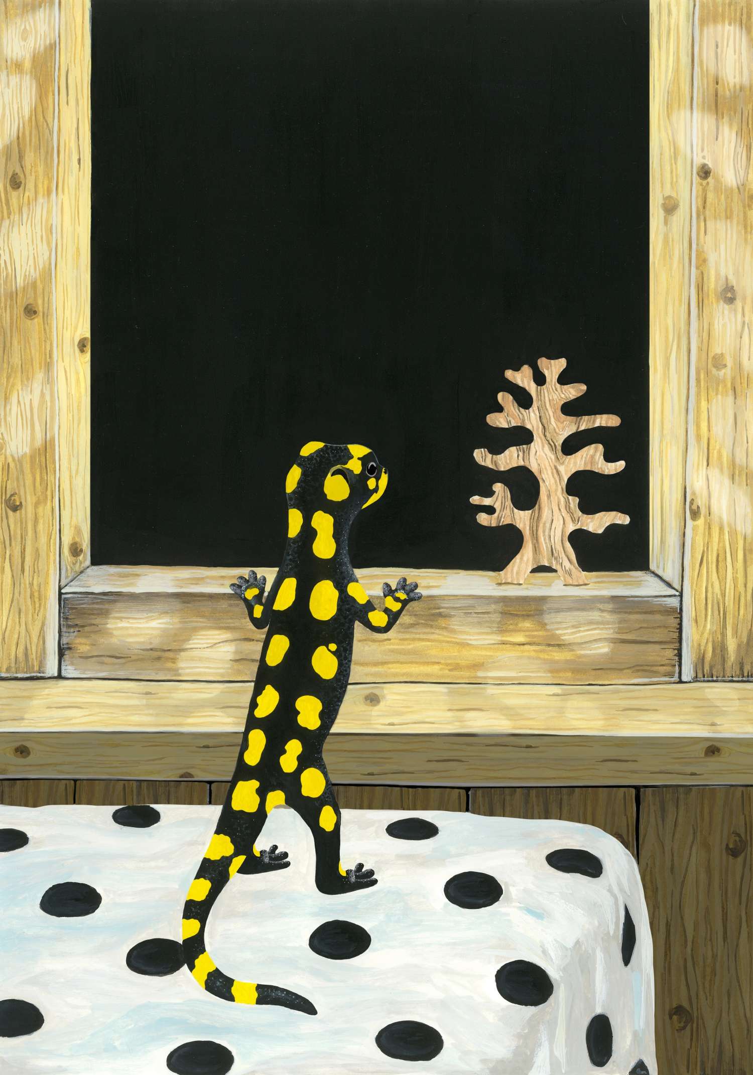 Was passiert, wenn man den Lebensraum eines Tieres radikal ernst nimmt — und dafür die Architektur selbst verändert? Mit The Salamander Room schafft Annina Arter eine ebenso sinnliche wie gedanklich präzise Installation, die Design, Kunst und Literatur miteinander verschränkt. Dabei entsteht ein begehbares Szenario zwischen Fantasie und Realität, das den Ausstellungsraum in eine fragile Landschaft möglicher Lebensformen verwandelt.