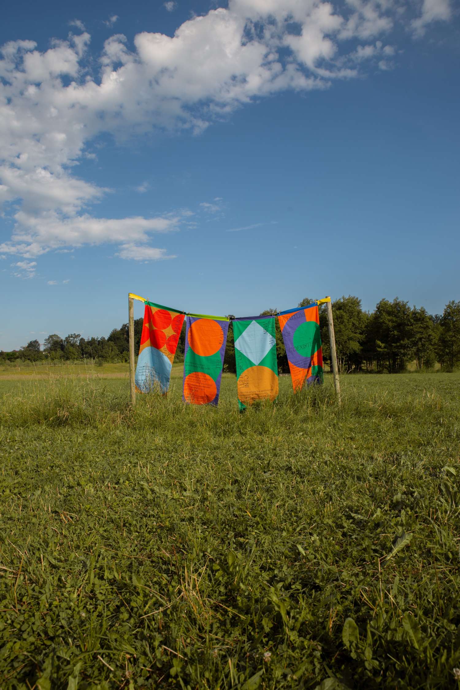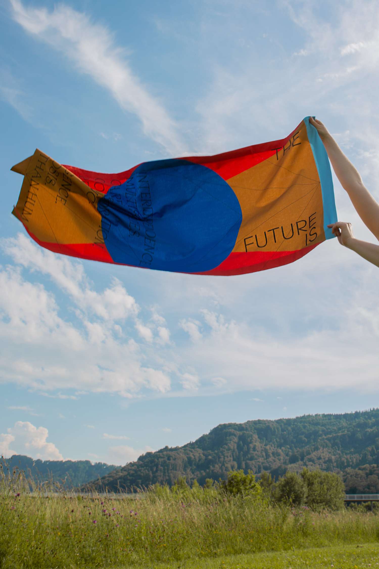 Für ihr Forschungsprojekt «Designing for More than Human Futures» (2021–2022) entwarf die Designerin und Zukunftsforscherin Juliana Schneider eine Serie von Fahnen, die den aktivistischen Charakter ihres Vorhabens einfangen und ein Manifest für mehr-als-menschliche Zukünfte tragen. Ebenfalls in der Ausstellung zu sehen ist das computergenerierte Video «Attunement» (2009) von Superflux. Es zeigt eine Zukunft, in der Roboter sicher und kooperativ mit Menschen arbeiten. In «Archäologie der Zukünfte» untersucht der Architekt Philip Loskant, wie Zukunftsszenarien als Raum für spekulative Fantasie genutzt werden können. Statt festgelegte, manipulative Erzählungen zu verfolgen, zeigt er eine Zukunft, in der verschiedene, offene Möglichkeiten nebeneinander existieren.