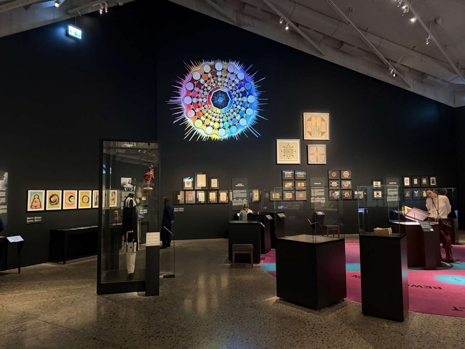 Gemeinsam ist den in der Ausstellung vertretenen Kunstschaffenden nicht ein Stil oder eine Epoche, sondern die Auseinandersetzung mit inneren Bildern, geistigen Modellen und psychischer Erfahrung.Die Arbeiten von Thomas Hirschhorn thematisieren psychische Überforderung, Fragmentierung und Daueranspannung als gesellschaftlichen Zustand und übertragen innere Konflikte in raumgreifende, bewusst ungeschützte Installationen. Johann Heinrich Füssli gilt als früher Vorläufer psychologischer Bildwelten: Seine Darstellungen von Traum, Angst und Nachtseiten der Seele antizipieren zentrale Motive der späteren Tiefenpsychologie. Die grossformatigen Zeichnungen von Emma Kunz entstehen aus einem meditativen Prozess und verstehen sich als visuelle Ordnungen innerer Energien und geistiger Zustände. Rudolf Steiner wiederum versuchte, seelische und geistige Vorgänge systematisch zu erfassen und in Diagrammen und Zeichnungen sichtbar zu machen – an der Schnittstelle von Denken, Wahrnehmung und spiritueller Erfahrung. Dass Erna Schillig in diesem Kontext sichtbar wird, ist eine späte Wiedergutmachung: Ihr Werk wurde lange übersehen, während ihre männlichen Zeitgenossen den kunsthistorischen Kanon bestimmten.