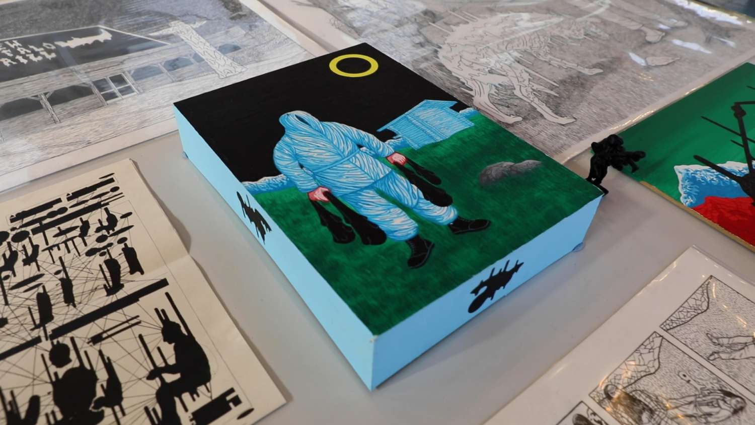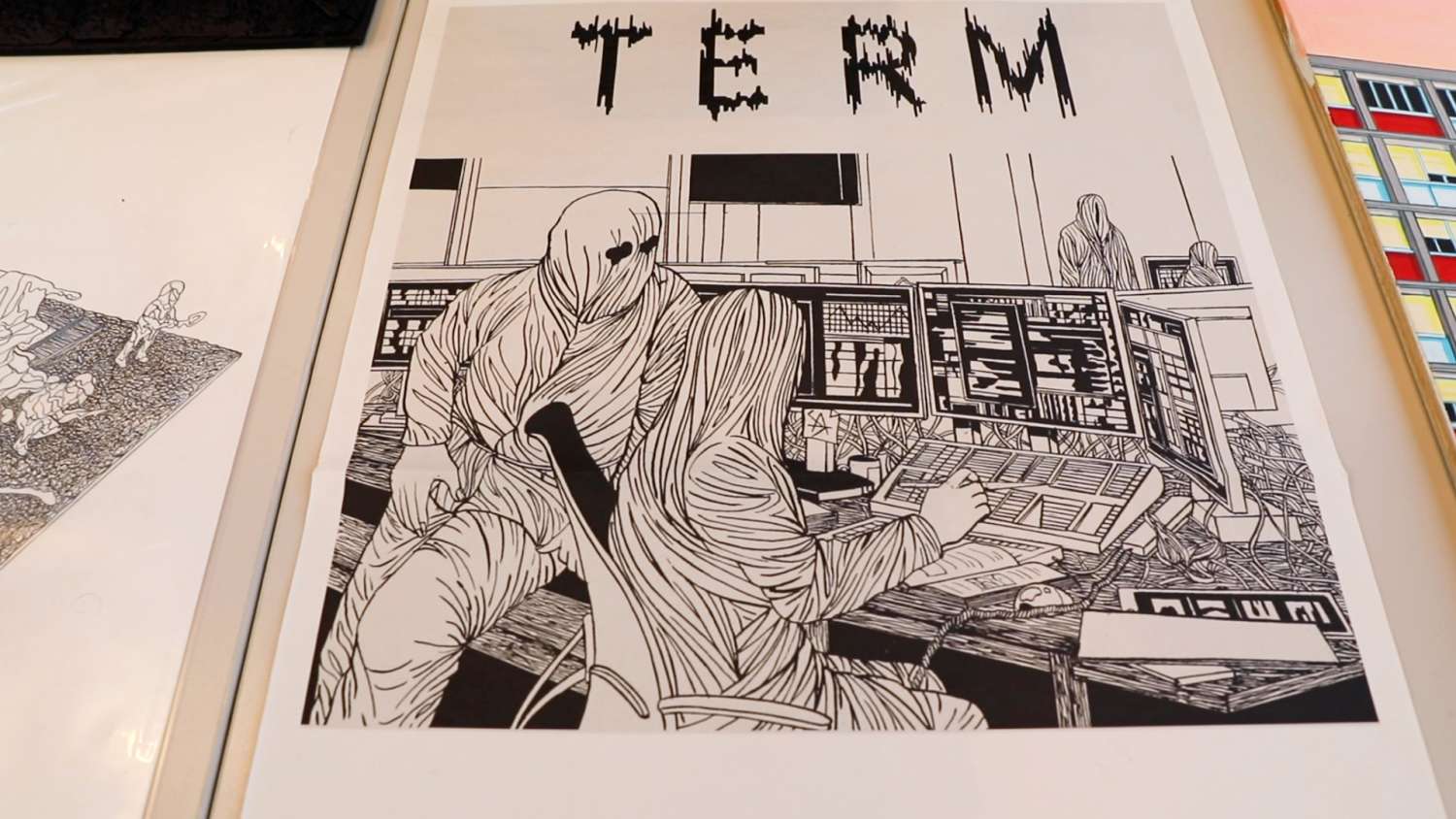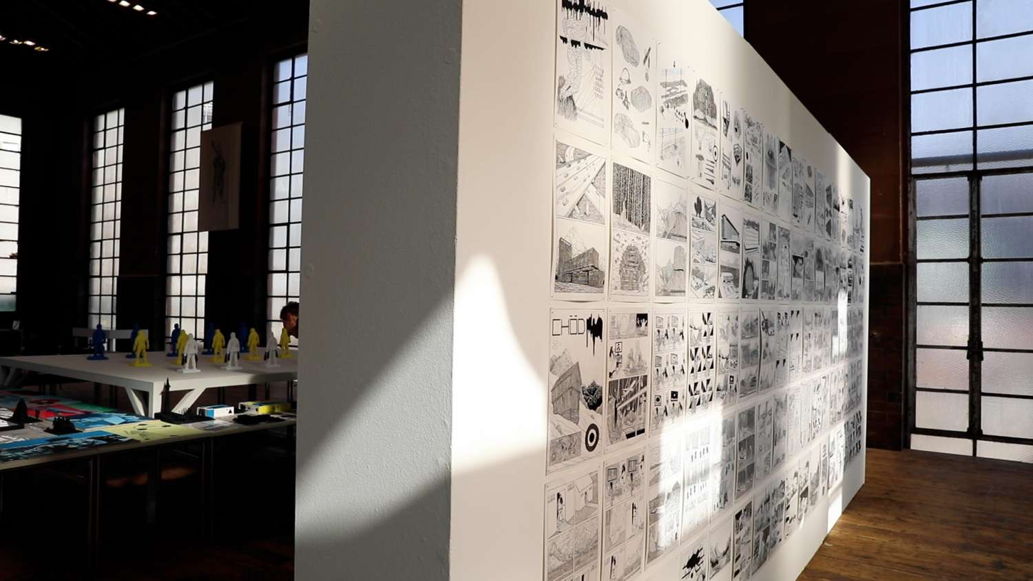 Seit über 40 Jahren entfaltet der Genfer Zeichner Helge Reumann (*1966) ein Universum mit einer starken grafischen Sprache, bissigem Humor und einer rigorosen Ästhetik, angesiedelt zwischen Comic und zeitgenössischer Kunst. Die raumgreifende Installation «Chöd» gibt einen Einblick in diese Arbeit, die sich den klassischen Comic-Strukturen entzieht.