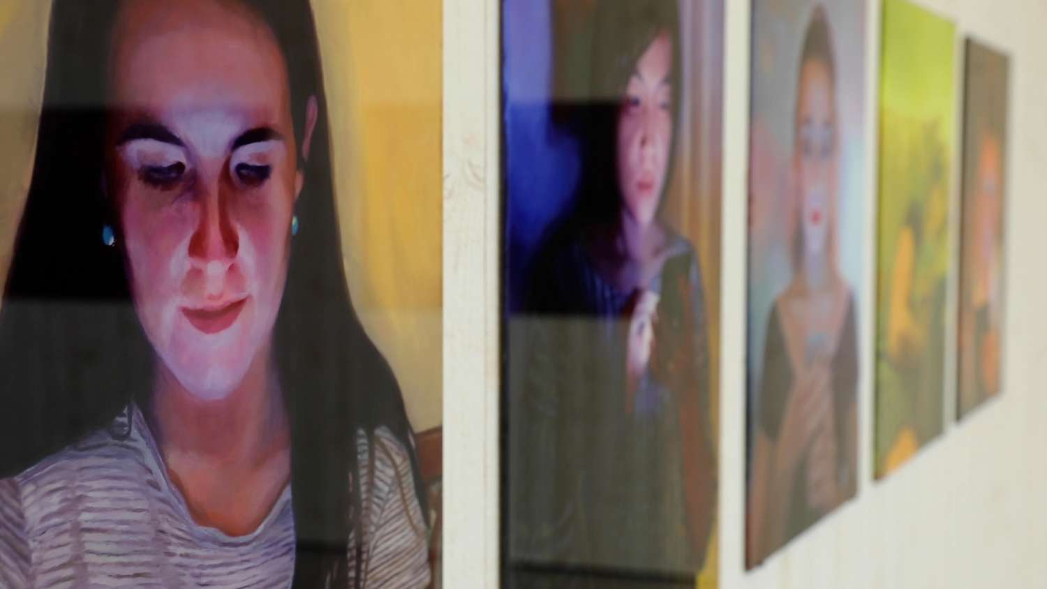 Im Fokus steht, was passiert, wenn Licht, Oberfläche und Spiegelung zu einem festen Bestandteil des Werkes werden. Die Betrachter:innen sind nie nur Zuschauer:innen – sie werden Teil des Bildes, das ihre eigene Präsenz reflektiert. «Hinter Glas» macht deutlich, dass die Technik nicht nostalgisch wirkt, sondern im Austausch mit aktuellen künstlerischen Fragestellungen neue Relevanz gewinnt. Gleichzeitig wird spürbar, dass die besondere Materialität eine eigene visuelle Sprache hervorbringt, die im musealen Kontext ebenso überzeugt wie in der zeitgenössischen Kunstproduktion ausserhalb traditioneller Ausstellungspraxen. Silvia Gertsch etwa interpretiert die Hinterglasmalerei radikal neu – ihre Serien wie «Handy Girls» zeigen Alltagsszenen junger Frauen und holen das Glasmedium mitten in unsere Gegenwart. Romuald Etter und Flavio Micheli erweitern das Spektrum: Etter mit gestisch-expressiven Nachtlandschaften und Micheli mit grossformatigen abstrakten Arbeiten auf Opalglas – beide zeigen, wie flexibel und modern Hinterglas heute sein kann. Esther Wicki-Schallberger verbindet in ihren Werken die Hinterglas-Tradition mit zeitgenössischer Bildsprache und spannt so einen Bogen zwischen alter Volkskunst und aktueller Kunstproduktion.