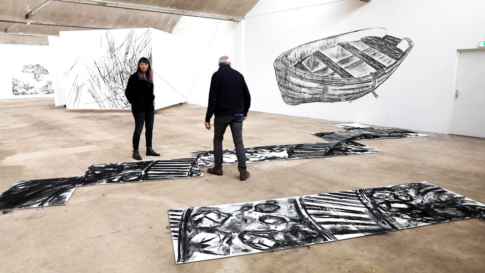 Die Basler Künstlerin Ana Vujić widmet sich diesen widersprüchlichen Gefühlen, die sowohl eine schützende als auch eine hemmende oder gar zerstörerische Kraft in uns tragen. Für ihre Ausstellung wurden speziell neue Arbeiten konzipiert und entwickelt. Im Mittelpunkt stehen grossformatige Kohlezeichnungen, die die Wände des ehemaligen Fabrikgebäudes raumgreifend bespielen. Ergänzt wird die Ausstellung durch neu entstandene Video- und Soundinstallationen.