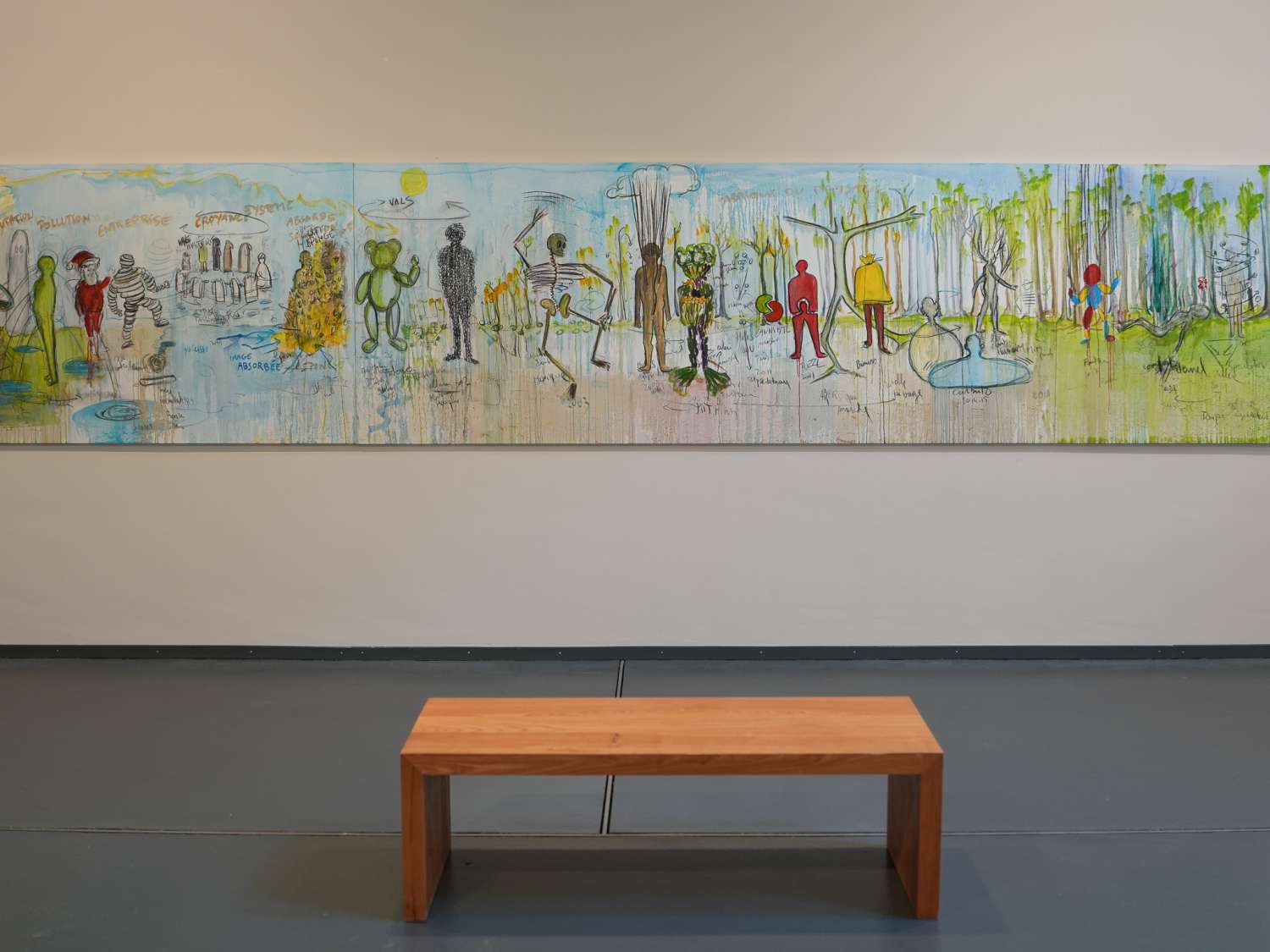 Kunst bedeutet Hoffnung und Glauben an die Vielfalt, sie entwirft Gegenwelten und Utopien – und manchmal realisiert sie diese auch. Für die Ausstellung in der Kartause Ittingen ging der Künstler von der Lebensweise der Kartäusermönche aus. Er zeigt nicht nur Entwicklungsprozesse der Natur in Gemälden, sondern macht auch emotionale Wandlungsprozesse in Form von Figuren erlebbar.