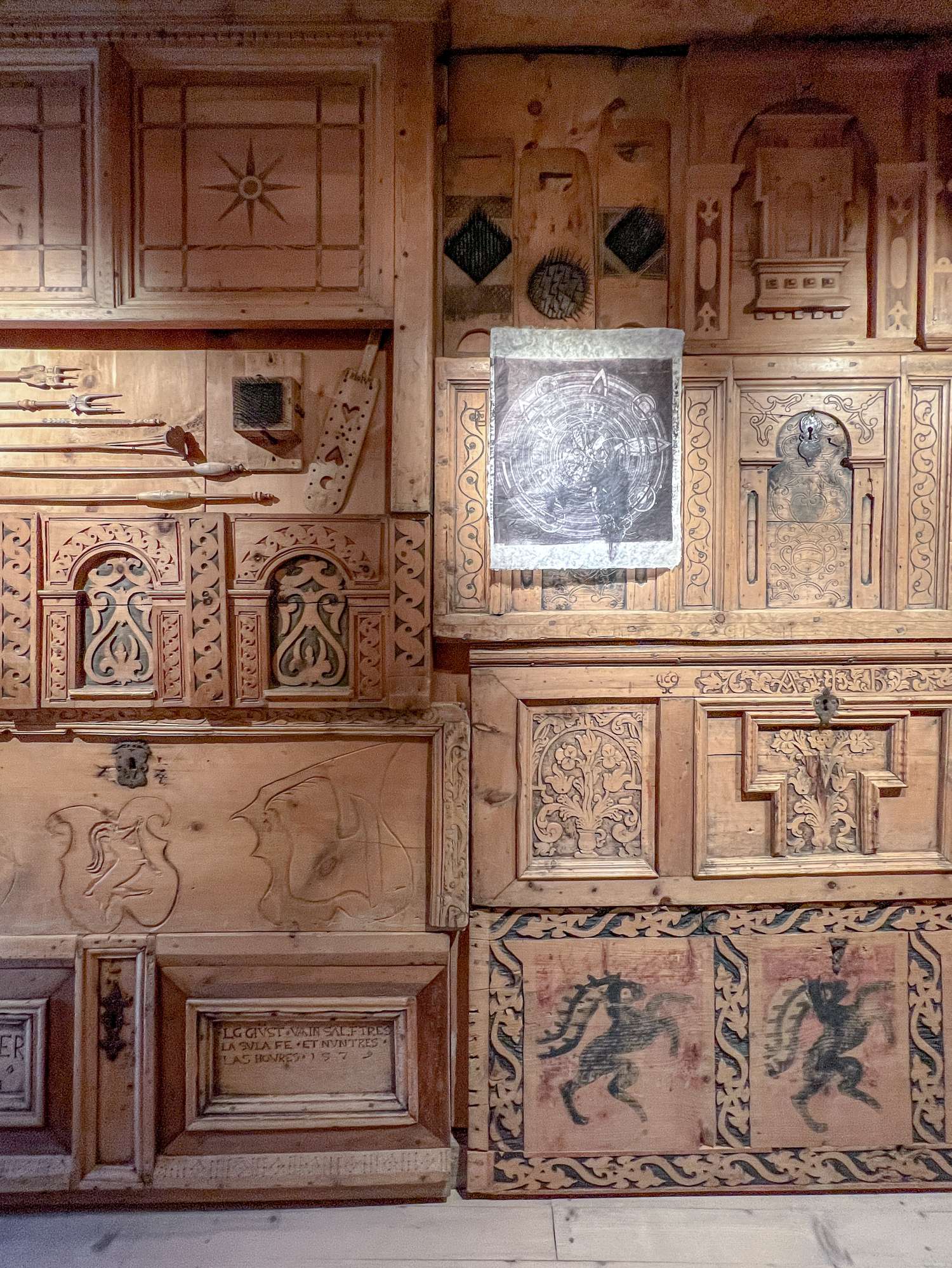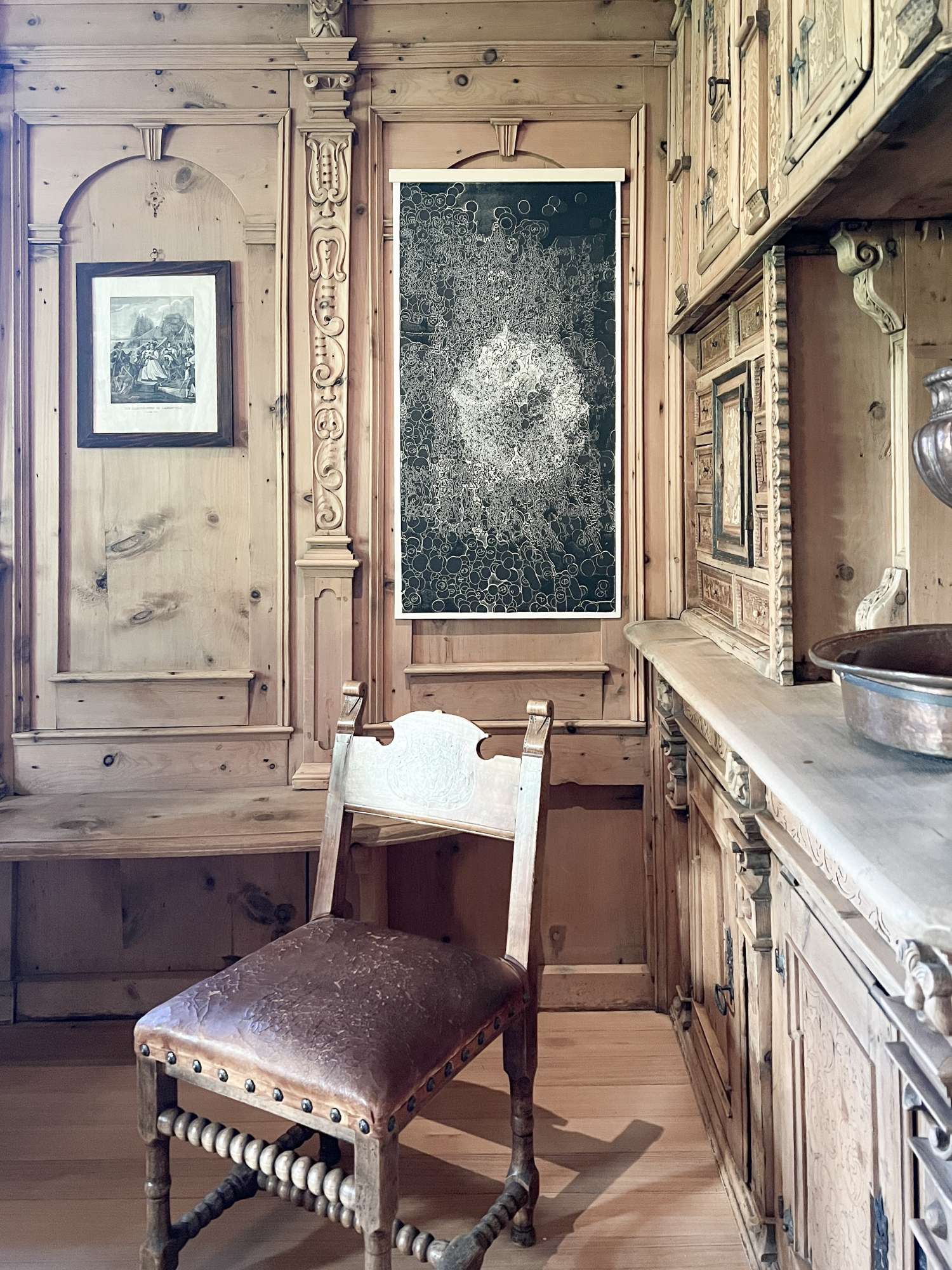 Mit der zweiteiligen Ausstellung ZIEHE WEITER gibt der Zürcher Künstler Michael Günzburger dem Engadiner Museum eine weitere visuelle Stimme. Gemeinsam mit seiner Assistentin Zita Fahrländer und in Zusammenarbeit mit der Zürcher Hochschule der Künste (ZHdK), aktivieren sie die Sammlung des Museums für neue Kunstproduktion. Die Ausstellung leitet den Blick mit natürlichen Strukturen, Ornamenten und wilden Schnitzereien.