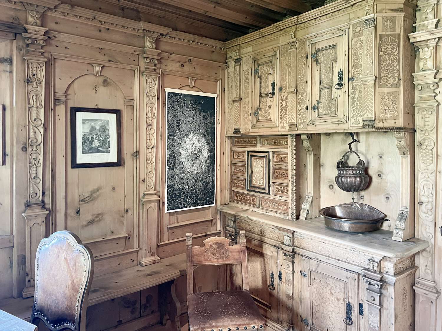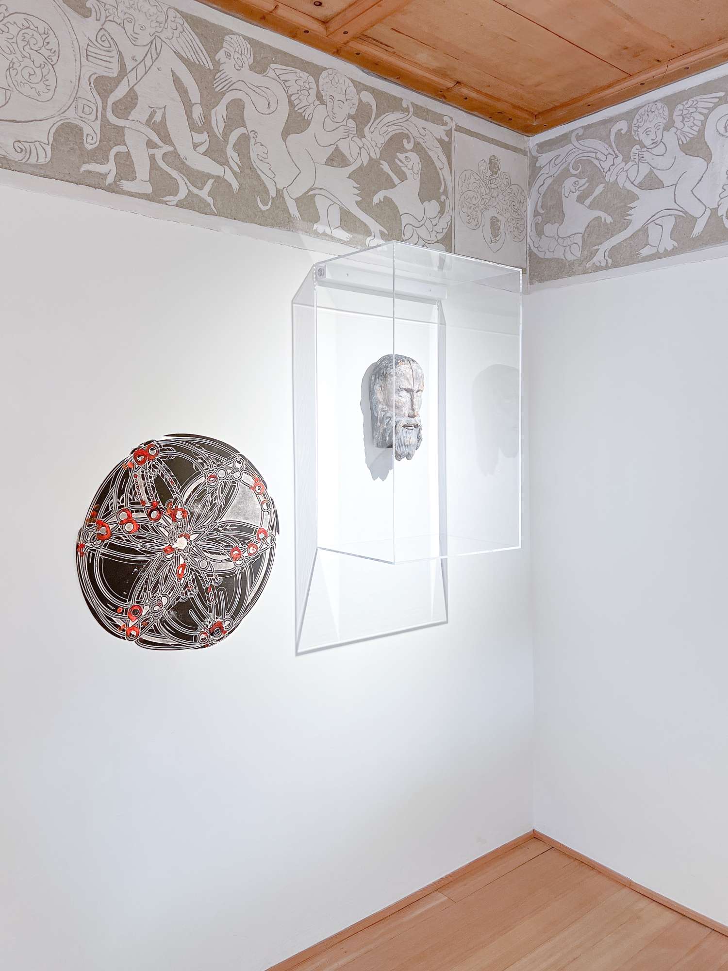 Im ersten Teil der Ausstellung ZIEHE WEITER – IM KREIS sind die Hauptprotagonisten die Rosetten und Astlöcher des Museums. Sie sind wie Augen, die uns beobachten. Prints mit digital bearbeiteten Bildern von Oberflächen und lasergraviertem Papier erzeugen eine intensive Blickabfolge im Haus. Im zweiten Teil ZIEHE WEITER – INS HOLZ liegt für die Wintersaison ab dem 6. Dezember der Fokus auf neuen, eigens entwickelten Abformungstechniken. Damit erhalten die über Jahrhunderte benutzten Objekte des Museums eine neue Stimme.