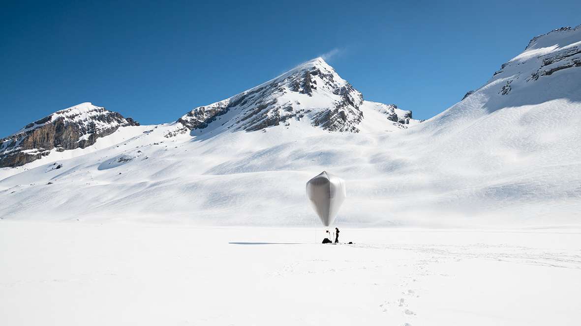 Im Zentrum der Ausstellung steht die raumgreifende, multimediale Installation «Voyages atmosphériques». Eine grosse Videoprojektion zeigt eindrückliche Bilder der Stratosphäre. Christina Hemauer und Roman Keller haben mit Hilfe von selbstgebauten und mit Kameras bestückten Solarballons aufgenommen. In Verbindung mit Sound können die Besucher*innen in die Atmosphäre eintauchen. Ausserdem gibt das Künstlerduo Einblick in sein reichhaltiges Recherchematerial und führt die Auseinandersetzung mit der Himmelsbläue in Stans fort. Es geht um das Verhältnis von Natur und Kultur, aber auch um die vielschichtigen Bedeutungen des ursprünglich religiös geprägten Begriffs «Himmel».