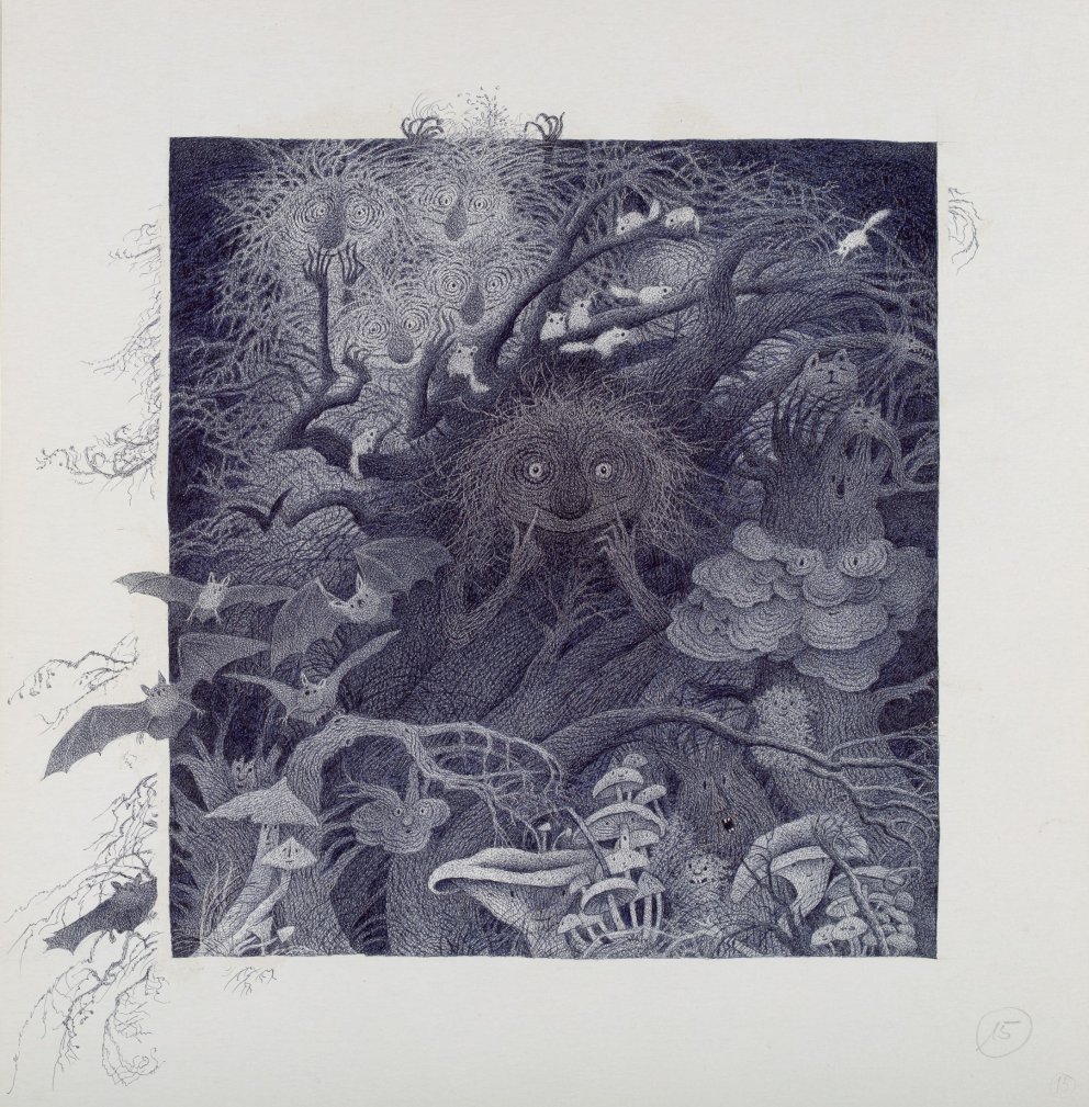 Neben zahlreichen Objekten und Fotos werden Werke der Kunstschaffenden Ueli Alder, Marlies Pekarek, Hans Schweizer, Harlis Schweizer und Birgit Widmer gezeigt. Die Arbeiten erzählen von Ruhe und Abgeschiedenheit, vom Lebendigen und Kraftvollen, vom Zauberhaften und Schauerlichen und von der Sorge um den gefährdeten Wald. Das Museum präsentiert zudem Originalzeichnungen der beiden Illustratorinnen Käthi Bhend und Pia Roshardt. Pia Roshardt hat neben zahlreichen Bilderbüchern auch den Silvaband «Aus unserem Wald» mit ihren präzisen Naturbeobachtungen illustriert. Die mehrfach ausgezeichnete Kinderbuchillustratorin Käthi Bhend verbindet in ihren Bildern eindrücklich realistische und magische Naturdarstellungen. Ihre filigranen Zeichnungen zeigen eine belebte, wundersame Welt und verleihen dem Wald Augen und Ohren.