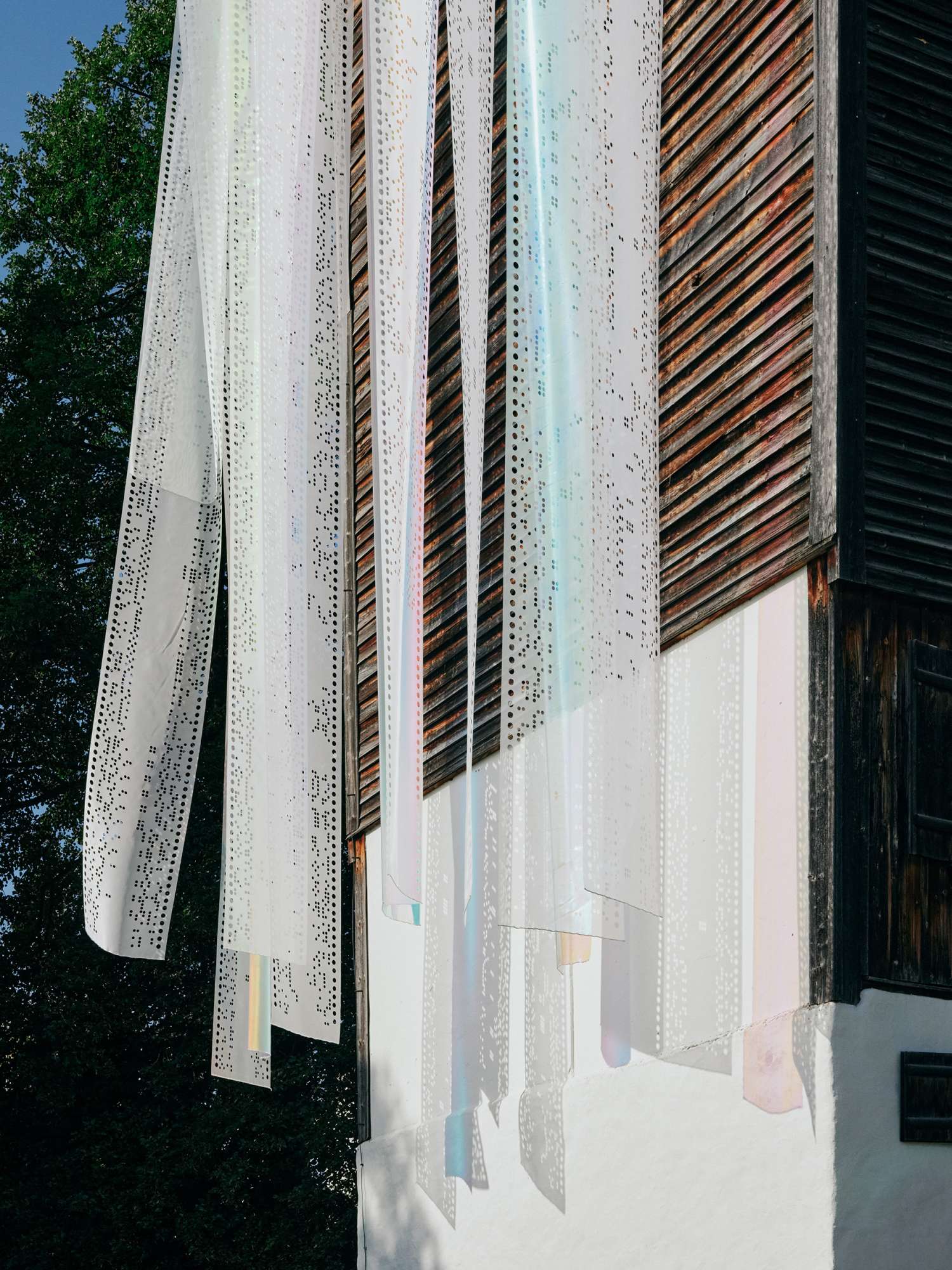 Stéphanie Baechler (*1983 in Meyriez/CH) lebt und arbeitet heute in Amsterdam. Sie begann ihr Studium des Textildesigns an der Hochschule Luzern – Design, Film, Kunst, und schloss es mit einem Master in Mode an der ArtEZ Arnheim/NL ab. Sie arbeitete als Textilentwicklerin und Designassistentin für Hussein Chalayan in London und war Leiterin des Druckdesigns für das renommierte Schweizer Textilunternehmen Jakob Schlaepfer. Ihr künstlerisches Schaffen hat sich fortwährend in Richtung Skulptur und Installation entwickelt. 2020 war Stéphanie Baechler Artist in Residence bei TaDA – Textile and Design Alliance in Arbon. 2024 zeigte sie in Zusammenarbeit mit der Kunsthalle St. Gallen ihre Installation «Forget Me Not» am historischen Tröckneturm in St. Gallen, zu der auch eine umfassende Publikation erschienen ist.
