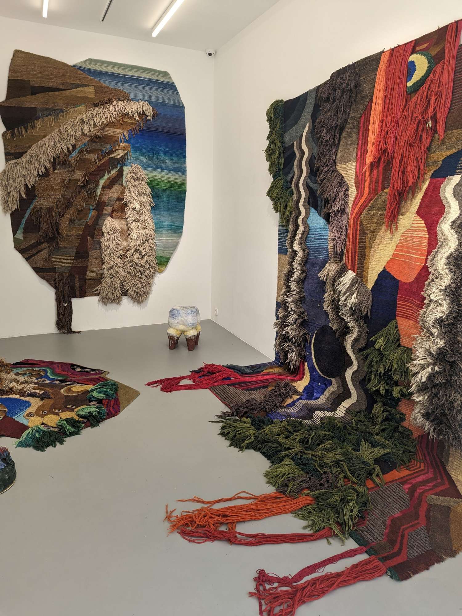Das Schaffen der multidisziplinären Künstlerin Stéphanie Baechler findet hauptsächlich an der Schnittstelle von Textil und Keramik statt. Dabei interessiert sie sich für das Zusammenspiel von Handwerk und Technologie und deren komplexe und oft intransparente Beziehungen. Ihr künstlerisches Schaffen hat sich fortwährend in Richtung Skulptur und Installation entwickelt. Sie bewegt sich heute zwischen dem, was sie Hardware (Keramik und Metallguss) und Software (Textil) nennt. In ihrer aktuellen künstlerischen Arbeit hinterfragt sie die Beweggründe, die dem ständigen Bedürfnis der Menschen nach Anerkennung in der allgegenwärtigen Social-Media-Landschaft zugrunde liegen. Durch ihre Arbeit mit Textilien, Stickereien und Keramiken untersucht Baechler die sinnliche Erfahrung, die aufgrund der heutigen Technologien immer seltener wird. Der Begriff «Bilderfahrzeuge» des Kunsthistorikers Aby Warburg war ein Ausgangspunkt für das Projekt, das Stéphanie Baechler 2022 während eines Residence Programms der Pro Helvetia in Kairo realisiert hat. Bilder und somit auch textile Bildkreationen sind immer auch Kommunikationsmittel und können in verschiedenen Ebenen als Erzählung, Dokumentation oder Kommentare wirken.