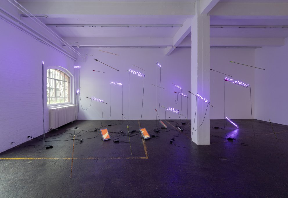 Für seine bislang grösste Einzelausstellung wird der Künstler neue Arbeiten realisieren, die gezielt auf den architektonischen Kontext der Kunst Halle Sankt Gallen eingehen. Sie nehmen Algorithmen als zeitgenössische Orakel und magische Formeln in den Blick. Netzbasierte Technologien werden immer mehr mit Konzepten von Magie und Ritualen verknüpft, und das Digitale als Schauplatz einer neuen Sakralität inszeniert. Erleben wir aktuell die Schaffung einer Cyber-Divinität? Die Ausstellung beobachtet das Verwischen der Grenze zwischen Wissenschaft und Mythos und karikiert den Bogen vom menschlichen Schöpferstatus hin zur algorithmischen Allmacht. So kommentiert die Einzelschau ein zeithistorisch brandaktuelles Thema mit künstlerischen Mitteln und eröffnet möglicherweise neue (erlösende?).