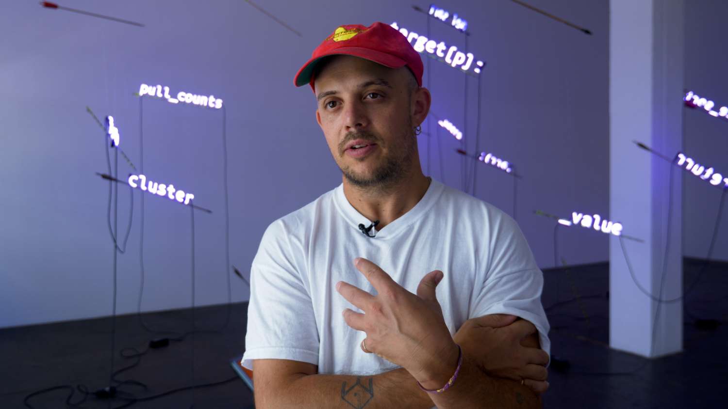 Mit seiner ersten Einzelausstellung nimmt Aramis Navarro die Macht der Algorithmen künstlerisch unter die Lupe.