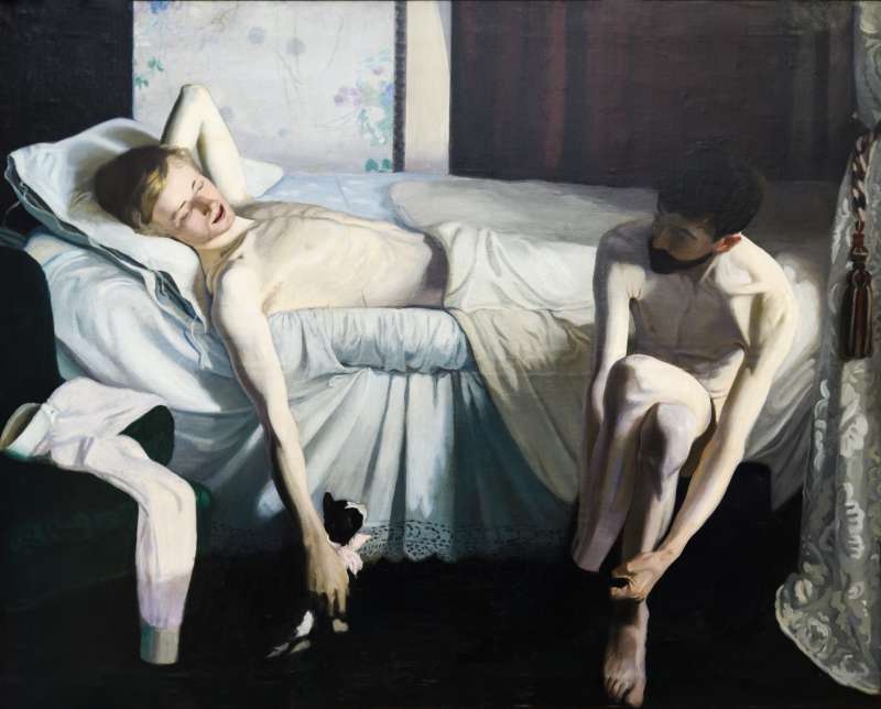 1869 taucht der Begriff «homosexuell» erstmals im deutschsprachigen Raum auf – und verändert seine Bedeutung in den folgenden Jahrzehnten grundlegend. Zwischen medizinischer Zuschreibung, gesellschaftlicher Stigmatisierung und der Suche nach Selbstbestimmung formiert sich allmählich eine Identität, die sich selbst bejaht. Künstler:innen reagieren früh auf diesen Wandel. Sie porträtieren Freund:innen und Liebhaber:innen, zeigen Paare im Alltag oder experimentieren mit Rollenbildern und Körperbildern. Vertraute kunsthistorische Motive, insbesondere der Akt, werden zu Trägern diskreter Codes, in denen sich Begehren, Nähe und Zugehörigkeit einschreiben.