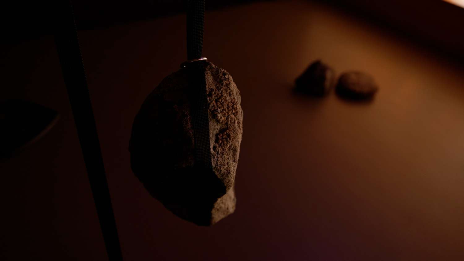 Demgegenüber entwickelt Aio Frei für den Dachstock des Museums eine neue ortsspezifische Arbeit. Die kollaborative Soundinstallation speist sich aus Recherchen zu einem mystischen Urner Weltverständnis, zu den Hexenverfolgungen in der Region und zu sonischen Formen der Wideraneignung gemeinsamer ritueller Praktiken. Zu hören sind Wolfstöne – jene heulenden, flackernden oder schwebenden Klänge auf Streichinstrumenten –, Fieldrecordings unter anderem vom Galgen in Hospental, Stimmen von Steinzeug:innen, Gesänge vom Myttenmätteli sowie kodierte queere Fluch- und Bannsprüche. Der Dachstock wird so zu einem akustischen Erfahrungsraum zwischen Geschichte, Mythos und Gegenwart.