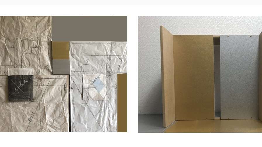 Die Dimension und die Situation der Galerie APROPOS verlangen nach konzentrierten und reduzierten Ausstellungskonzepten. Erwin Hofstetter und Henri Spaeti hatten diesbezüglich eine bestechende Idee, sie verarbeiten jene golden und silbern bemalten MDF-Platten, mit denen sie in Stans den Kachelofen, den energetischen Kern des Hauses, ummantelten. Für die aktuelle Ausstellung schaffen sie nun aus dem vorhandenen Material etwas Neues. Die hälftig zugeschnittenen Gold- und Silberplatten teilten sie unter sich auf. Mit dem vorhandenen Material realisierten sie individuell Objekte und Malereien und stellen diese gemeinsam in einen dialogischen Kontext. Fragen nach der möglichen Ausdehnung und dem Volumen in Bezug zum vorhandenen Raum spielen so eine zentrale Rolle.