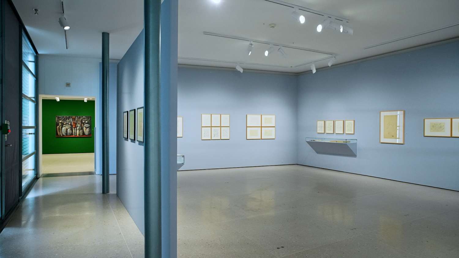 Eine zweite Perspektive der Ausstellung öffnet den Blick auf das Umfeld des Künstlers. Dokumente aus dem schriftlichen Nachlass, Bücher aus seinem Besitz, Fotografien, Ausstellungskataloge und Zeitungsausschnitte machen deutlich, wie vielschichtig die Persönlichkeit von Max von Moos war. Punktuell wird sein Werk durch Arbeiten von Künstler:innen ergänzt, die ihn beeinflusst haben oder zu seinen Schüler:innen zählten – und so sein künstlerisches Netzwerk sichtbar machen.