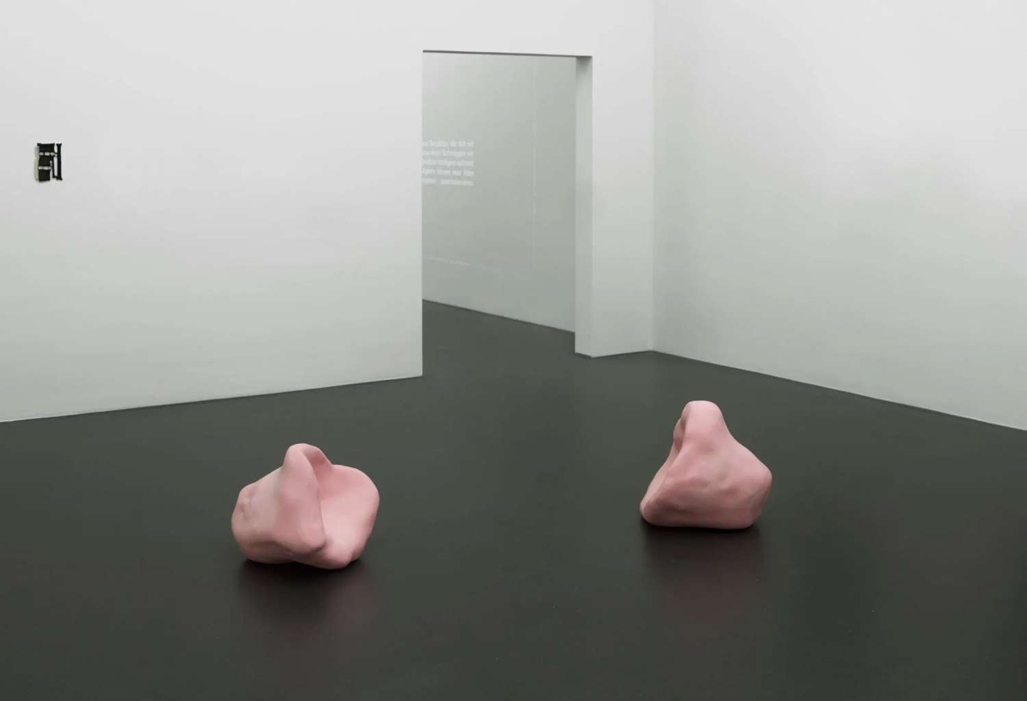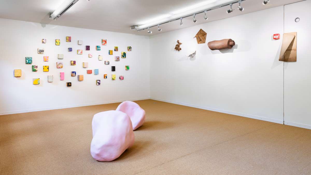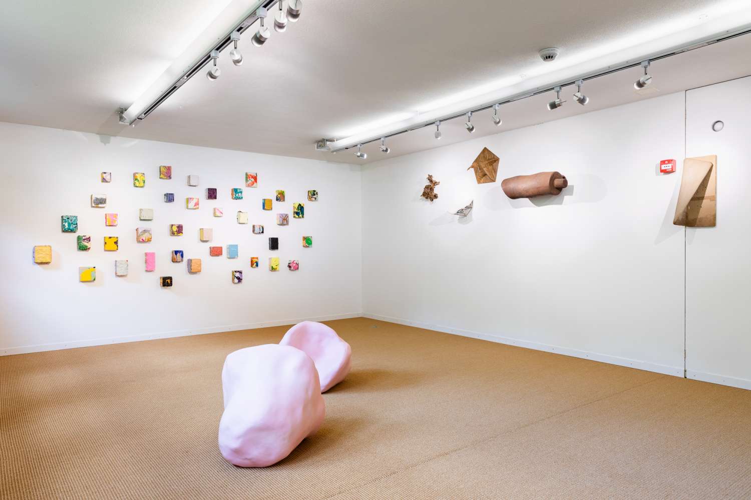 Im Eingangsbereich, links in den zwei musealen Vitrinen, befindet sich ein Amuse-Bouche – sozusagen Grüsse aus den Ateliers einiger der ausstellenden Kunstschaffenden. Kleine Preziosen, Nebenprodukte, Recherchen und Fundsachen liegen unkommentiert und stellvertretend für die künstlerischen Kosmen.