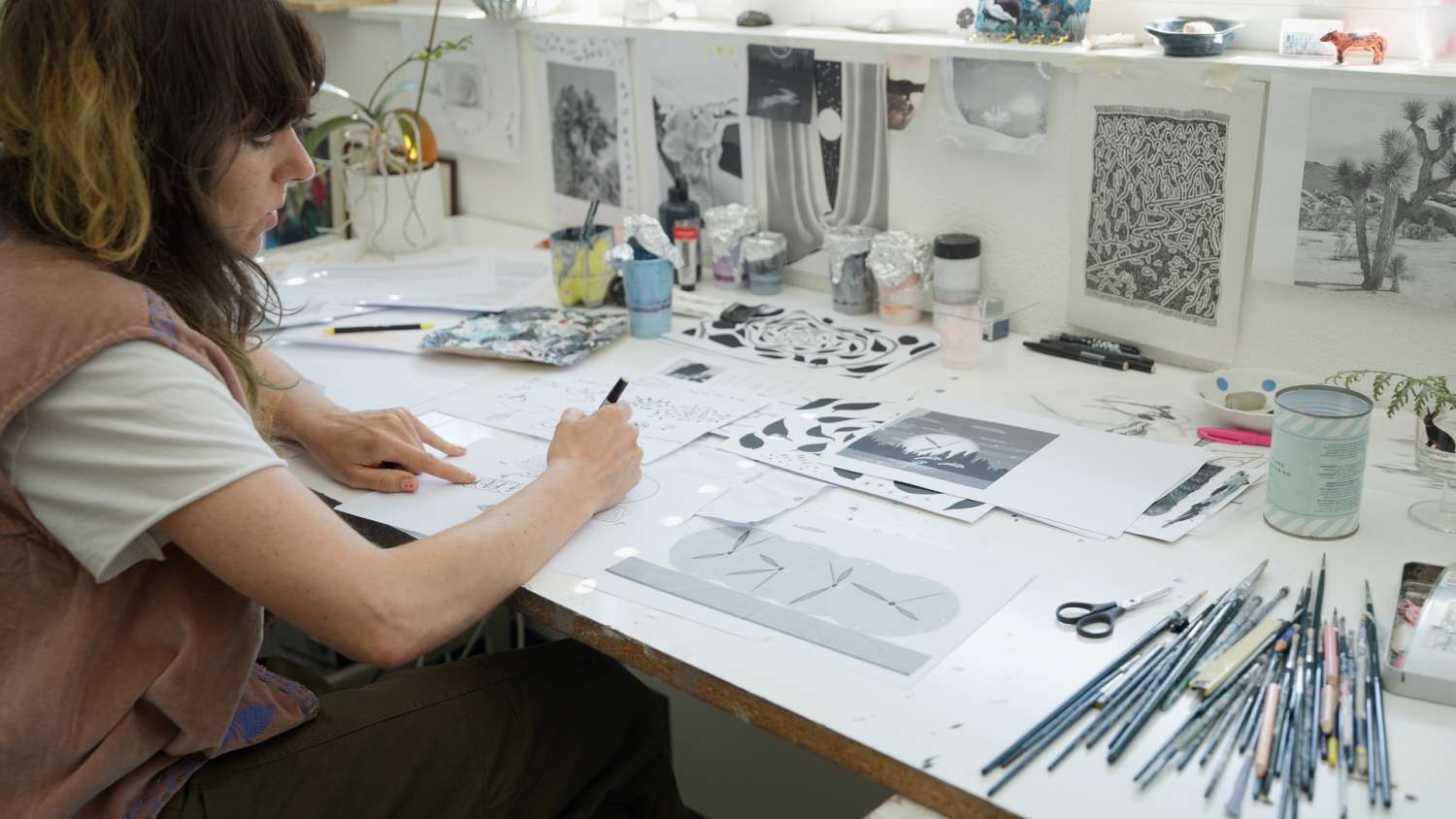 Ein Blick ins Atelier in Altdorf, wo aus groben Skizzen und feinen Beobachtungen allmählich neue Bildwelten entstehen.