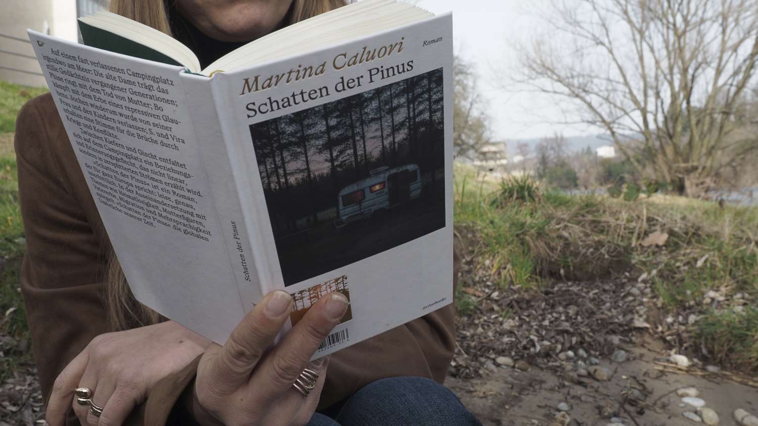 Ein fast verlassener Campingplatz, zwischen Kiefern (Pinus) und Gischt, irgendwo am Meer: Die alte Dame trägt das stille Gedächtnis vergangener Generationen; Phine ringt mit dem Tod von Mutter; Bo kämpft mit dem Erbe eines repressiven Glaubens. Jochen wiederum wurde von seiner Frau und den Kindern verlassen, S. und Vira erhalten eine Stimme für die Brüche durch Kriege und Konflikte. In der Auseinandersetzung mit Themen wie Heimatlosigkeit, Mutterfiguren, Vatererbe, Migration und der Mehrsprachigkeit in Erinnerung und Sprache spiegelt «Schatten der Pinus» die globalen Umbrüche unserer Zeit. Martina Caluori gelingt ein sprachmächtiges Werk über den Widerstand der Natur, das Aufbrechen von Erinnerungen und die ständige Transformation von Identität.