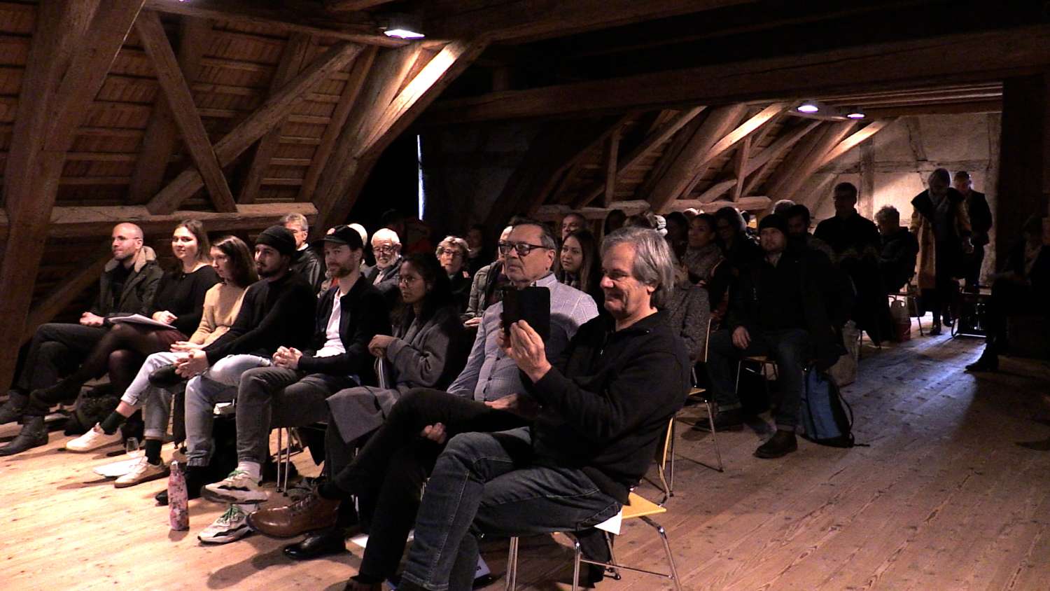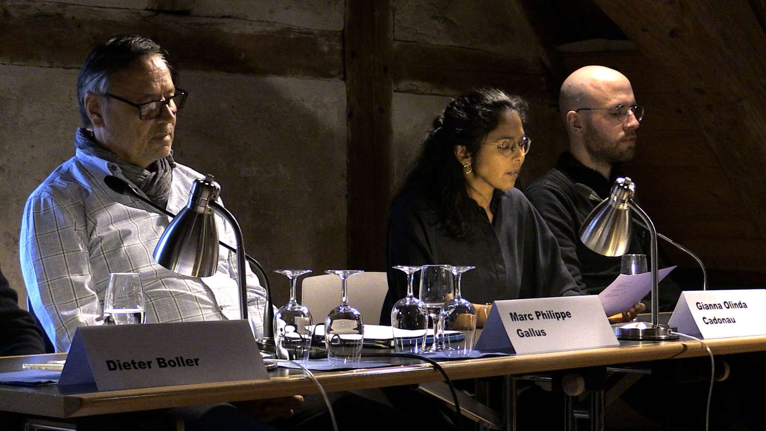 Während des Apéros im Anschluss bot sich auch für das Publikum Zeit, um auf das Gehörte zu reagieren, sowohl direkt durch Gespräche oder indirekt über Kommentare auf Plakate.