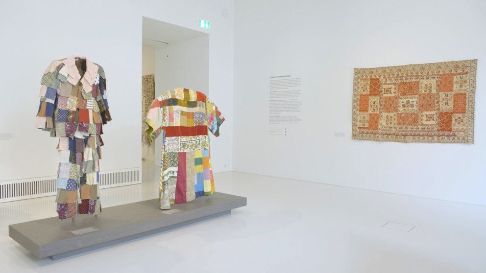 Die Ausstellung «Stückwerk: geflickte Krüge, Patchwork, Kraftfiguren» spürt Praktiken nach, die dem Zusammennähen, Reparieren oder der Zerstörung zugrunde liegen.