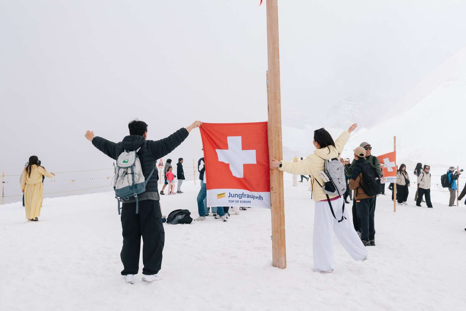 Die Tourismussammlung des ALPS dokumentiert, wie Berge bereist, erlebt und konsumiert werden. «Souvenir» zeigt erstmals Ausschnitte aus dieser Sammlung: Bergstöcke, Gipfelsteine, Souvenir-Alben, Fotos – sogar ein Steinbockgehörn befindet sich darunter. Für die Ausstellung haben verschiedene Menschen ein persönliches Objekt beigesteuert – vom Skizzenbuch über die Schneekugel bis zum gestohlenen Bademantel – und erzählen ihre damit verbundenen Geschichten. Die Protagonist:innen sprechen über Souvenirs im Spannungsfeld zwischen Handwerk und Massenware, Kitsch und Tourismusmarketing. Dabei wird deutlich, dass Souvenirs weit mehr sind als nur Erinnerungsstücke. Sie sagen viel über unser Verhältnis zu Orten, Reisekultur und Konsumverhalten aus. Auch internationale Tourist:innen auf dem Jungfraujoch kommen zu Wort. Sie berichten, was sie an diesem Ort so beeindruckt – und weshalb sie bis zu einer Stunde anstehen, um ein Foto mit der Schweizer Flagge aufzunehmen.