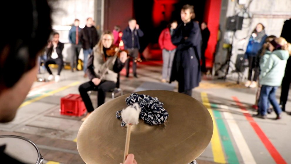 Das Lucerne Improvisers Orchestra (LUIO) entwickelte unter der Leitung von Magda Mayas und Julian Sartorius eine raumbezogene musikalische Performance im Bremshaus in Stans. Die Musiker:innen waren über den ganzen ehemaligen Flugzeug Hangar verteilt und durch ein Funksystem miteinander verbunden. Vom anliegenden Kontrollraum aus gaben Magda Mayas und Julian Sartorius über Funk Spielanweisungen an die Musiker:innen; so wurde das Lucerne Improvisers Orchestra – auf für das Publikum weder sichtbare noch hörbare Weise – wie von Geisterhand dirigiert. Das Publikum durfte sich während des Konzerts durch das akustische Hörerlebnis frei bewegen.