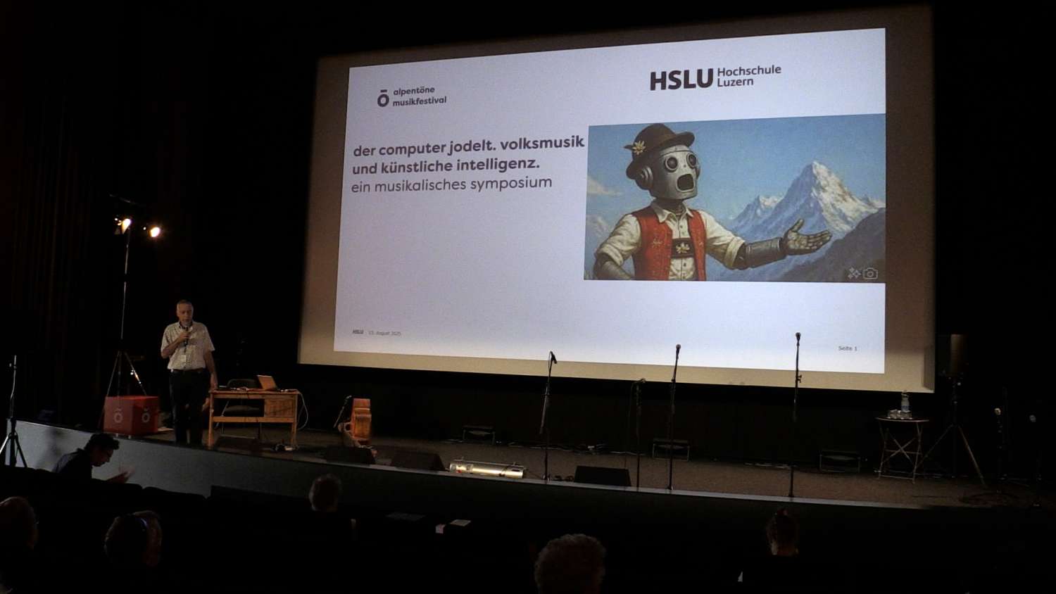 Beherrscht die KI jetzt auch schon den Glottis-Schlag? Alpentöne geht, zusammen mit der HSLU, in einem grossangelegten Projekt der Frage nach, welchen Einfluss KI auf die Volksmusik haben kann. Im Rahmen der interaktiven Ausstellung erklingen künstliche und natürliche Volksmusik. Die Besucher:innen können selber mit der KI interagieren, die Musik gestalten. Wie fremd klingt sie? Ist es mit dem Jodel-Alphorn-Fahnenschwinger-Klischee bald vorbei? Ein emotional-informativer Grenzgang.