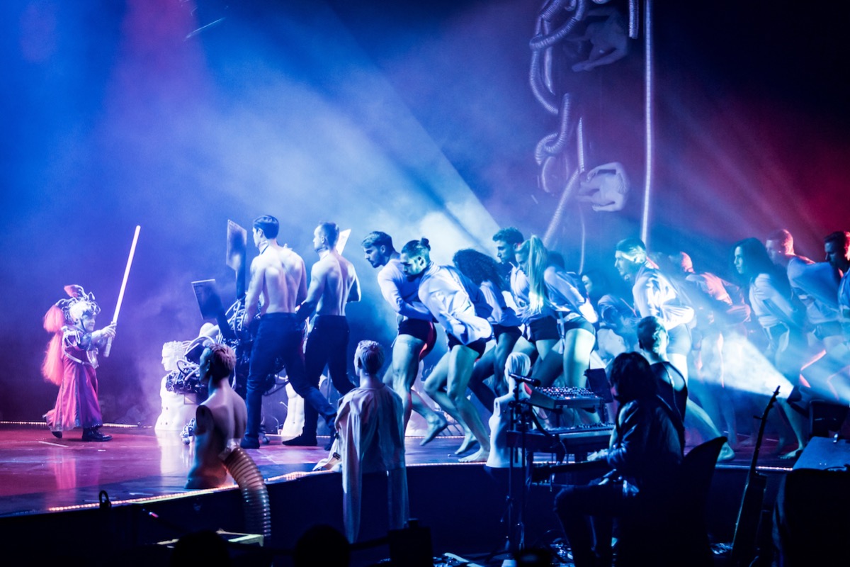 Der Schweizer Luftakrobat, Performer, Tänzer und Martial-Arts-Kämpfer Nick Beyeler aus dem Cirque du Soleil: Er tritt mit einer Aerial Plastic Tube auf. (DemoReal)