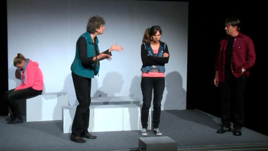 Mittels der interaktiven Form des Forumtheaters kann das Publikum das Verhalten der Figuren unter die Lupe nehmen und andere Handlungsweisen ausprobieren. Es spielen und nehmen die Anregungen des Publikums auf: Christina Benz, Agnes Caduff, Anja Tobler und Roland Lötscher.