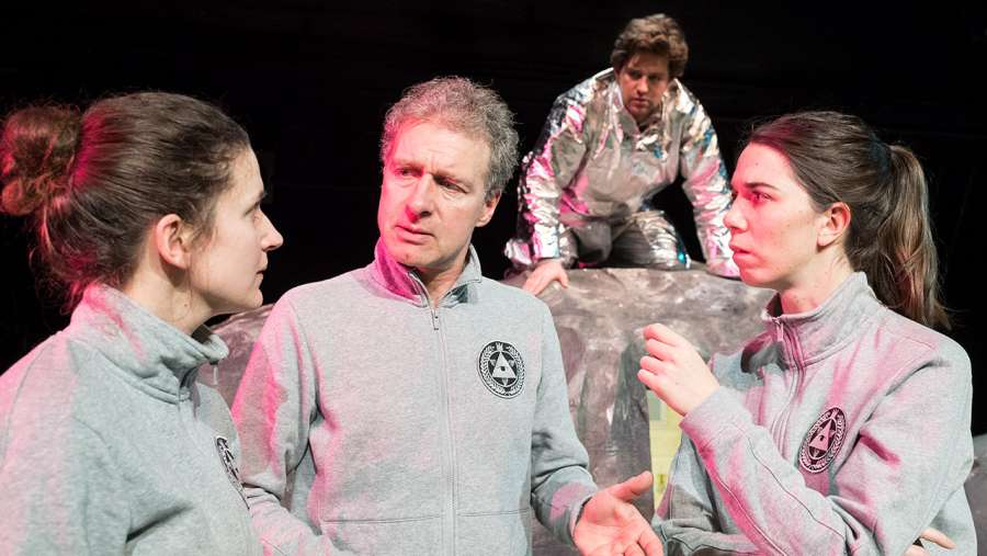 Die Welt wird von Echsen regiert, die Erde ist eine Scheibe und die Mondlandung wurde im Filmstudio inszeniert. Alles wahr? Daniel Di Falco verwebt in seinem Theatertext über Verschwörungstheorien verschiedene Stränge zu einem stimmungsvollen Teppich und schmückt diesen mit Wort- und Gedankenspielen. Eine vielschichtige Inszenierung, die mit den Grenzen des Glaubwürdigen spielt und das Publikum dazu zwingt, selber zu beurteilen, was verlässliche Information ist und was nicht.