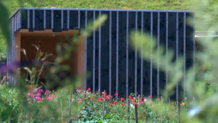 Der neue Geräteschuppen im Garten des Frauenklosters St. Klara offenbart seine Qualitäten erst auf den zweiten Blick. Die Architekten Hans Peter Odermatt und Daniel Niederberger aus Stans haben mit dem schlichten und eleganten Zweckbau einen feinen Akzent in die barocke Gartenanlage gesetzt. Neu und alt, Tradition und Moderne, Zweck und Ästhetik verweben sich auf vielfältige Art und Weise miteinander. Das schwarz und grau gestreifte Gartenhaus bildet einen dezenten Kontrast zum überwältigenden historischen Klostergebäude.