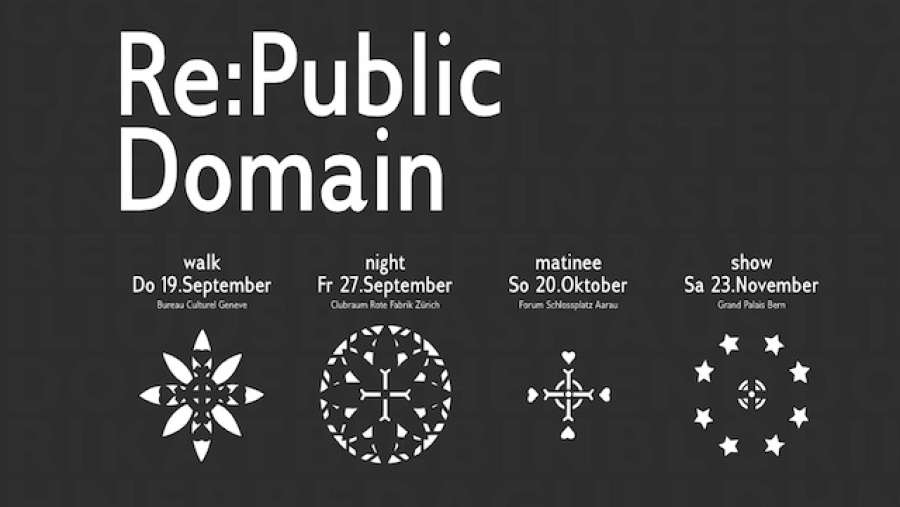 Im Herbst 2013 organisiert Dock18 mit Partnerinnen wie Wikimedia Schweiz und Migros Kulturprozent unter dem Titel «Re:Public Domain» in der ganzen Schweiz vier Veranstaltungen. 16 Kunstschaffende sind eingeladen, ihre Bearbeitungen von Public Domain Materialien vorzustellen. Jeder der vier Anlässe ist unterschiedlich ausgestaltet. Während den Besucher in der Roten Fabrik eine ganze Nacht erwartet, gibt es im Forum Schlossplatz Aarau eine Matinee mit Brunch, und das Kulturbüro Genf organisiert eine Wanderung in die Wälder des Mont Salève, wo 1942 Robert Musils Asche von seiner Frau verstreut wurde. Den Abschluss bildet eine Show im Grand Palais Bern, wo auch der diesjährige Swiss Re:Public Domain Remix Preis vergeben wird.