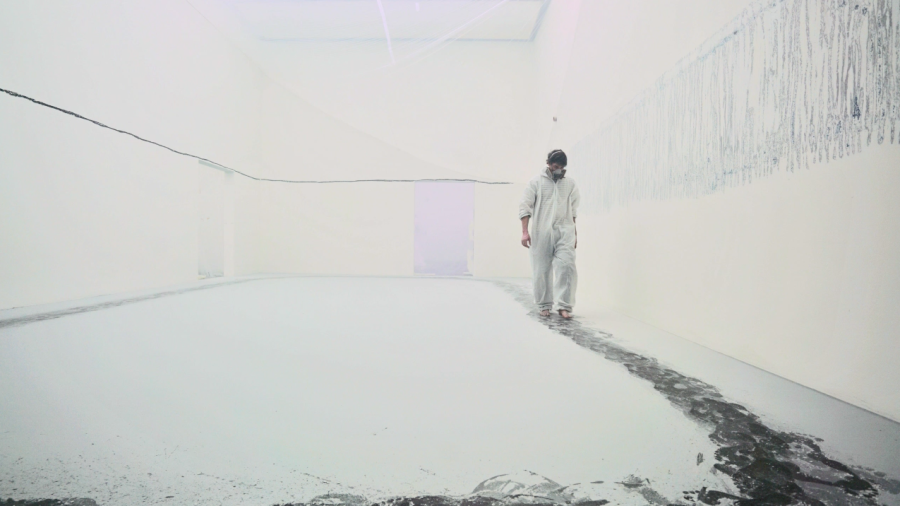 Simon Ledergerber manipuliert für seine neu entwickelte Arbeit die Wände des Kunstmuseums Luzern. Eine gewaltige Installation.