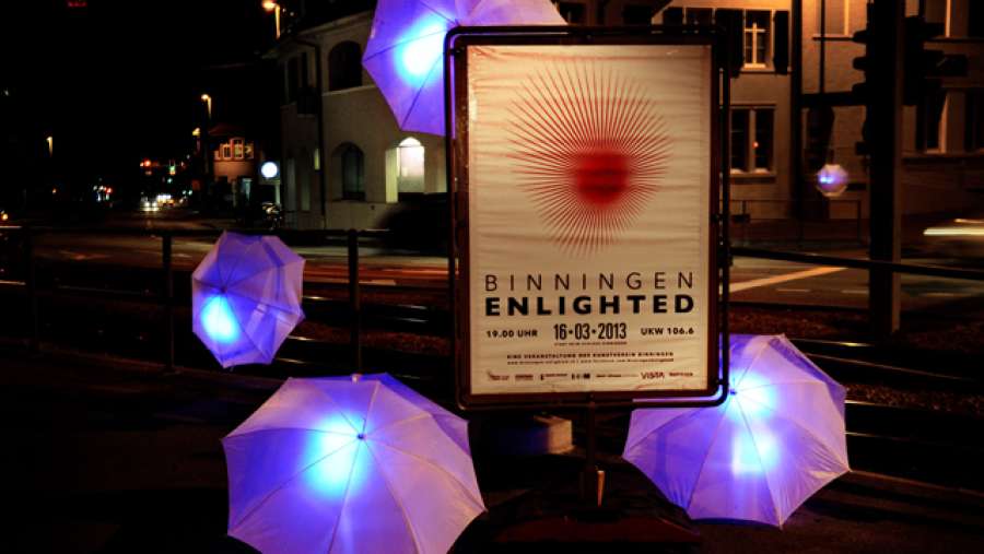 Hunderte von Leuten nahmen mit Taschenlampen ausgerüstet an der Lichtperformance „Binningen Enlighted“ in Baselland teil. Der Parcours begann beim Schloss Binningen und führte durch die Gassen von Binningen zum Sportplatz. Es boten sich wunderschöne Lichtinstallationen und Klangwelten auf einem poetischen Spaziergang durch das Städtchen. Der früher verwahrloste Ort hat sich zum wohlhabenden Vorort entwickelt. An Hauswänden, Erkern, Flaschenentsorgungsdepots und Balkonen wurde die Geschichte Binningens mittels Projektionen bebildert. Durch ein sinnliches Hörspiel, das auf dem Sportplatz vom Publikum selbst inszeniert wurde, lernte man die schöne Gründungssaga des Ortes kennen. Ein engagiertes Kunstprojekt, das die Teilnehmer begeisterte!